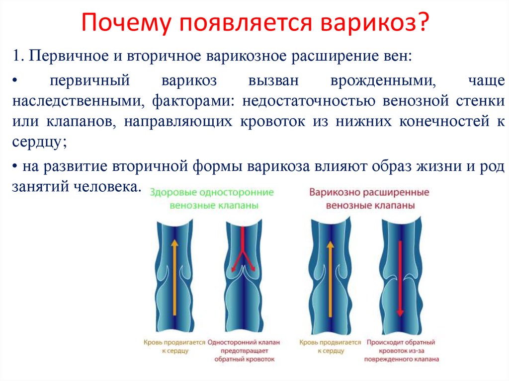 Почему появляется варикоз?1. Первичное и вторичное варикозное расширение вен: