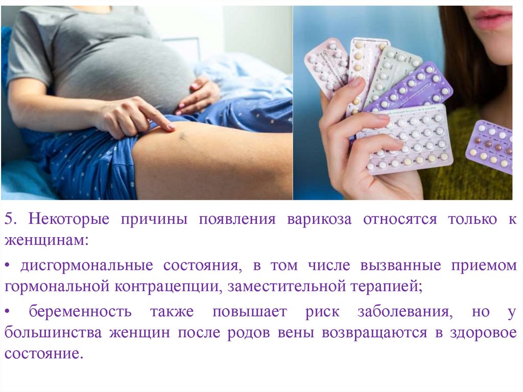 5. Некоторые причины появления варикоза относятся только кженщинам: