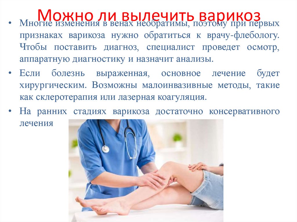 Многие изменения в венах необратимы, поэтому при первых