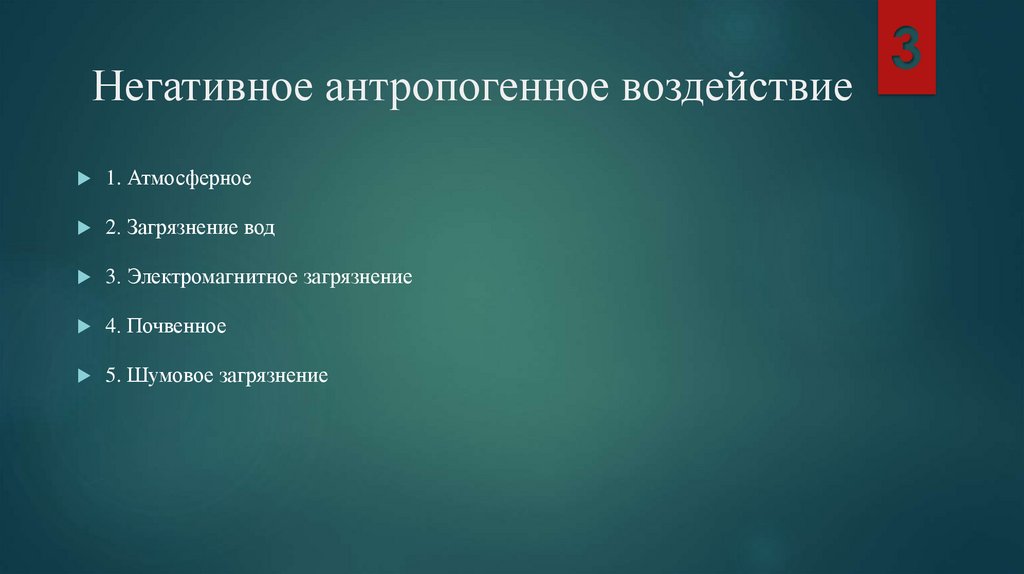 Негативное антропогенное воздействие1. Атмосферное