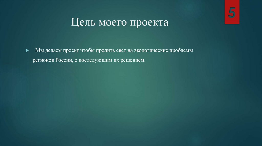 Цель моего проектаМы делаем проект чтобы пролить свет на экологические проблемы