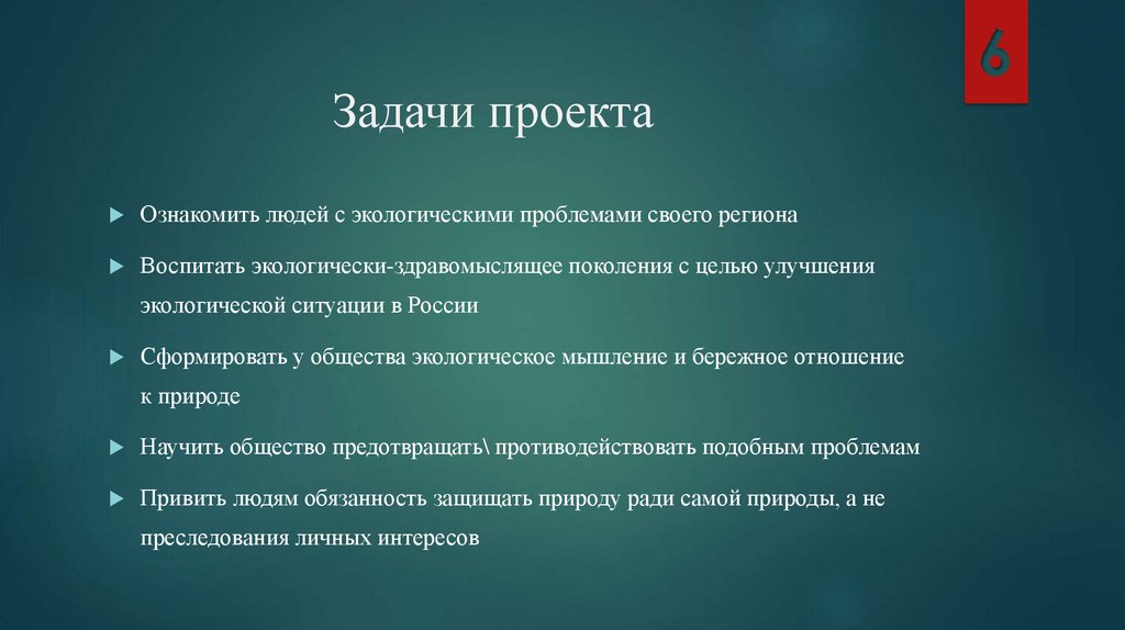 Задачи проектаОзнакомить людей с экологическими проблемами своего региона