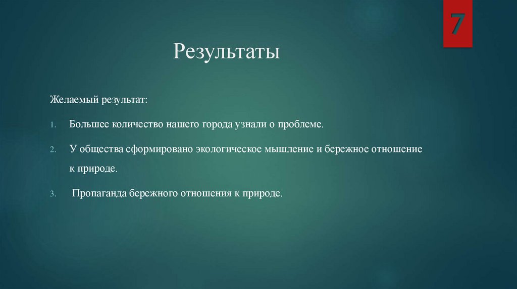 РезультатыЖелаемый результат: