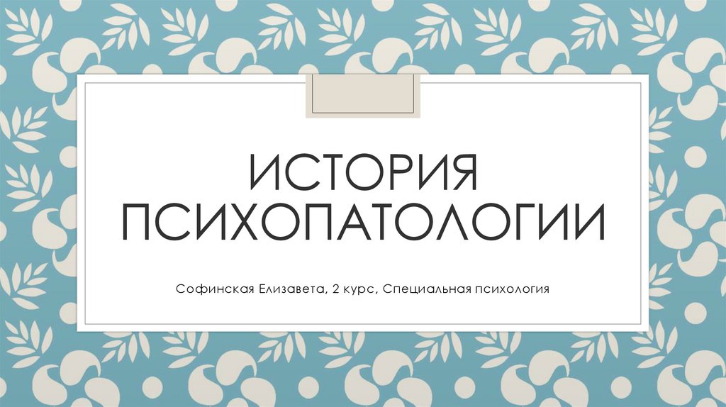 ИСТОРИЯПСИХОПАТОЛОГИИ