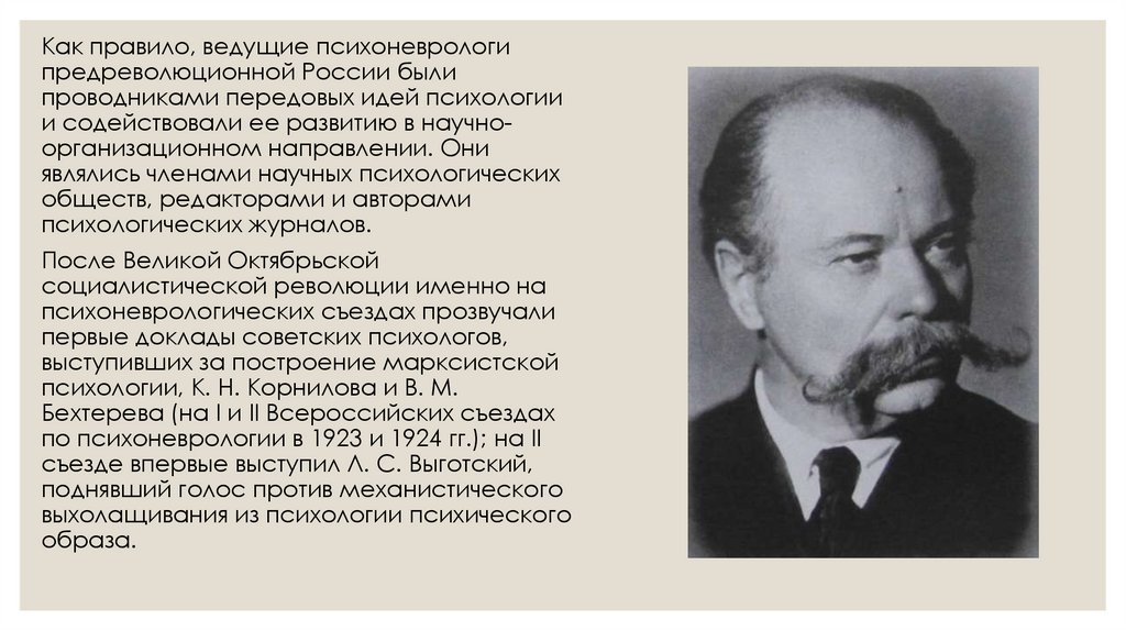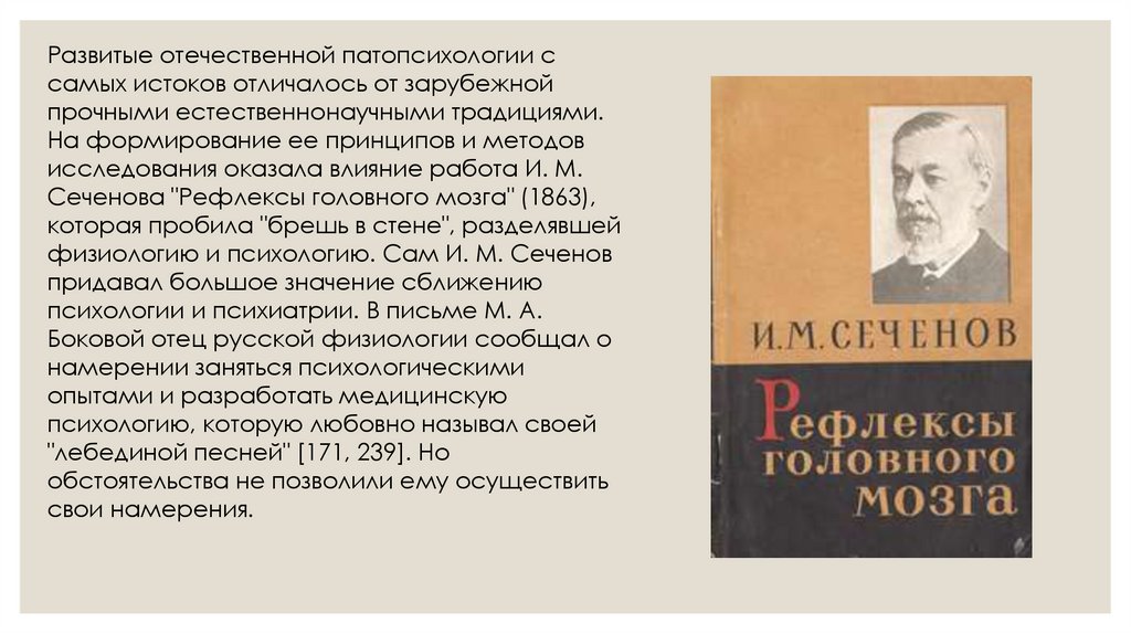 Преемником И. М. Сеченова на этом пути стал В. М.Бехтерев, психиатр по образованию, родоначальник