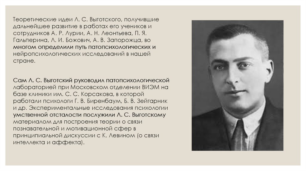 Теоретические идеи Л. С. Выготского, получившиедальнейшее развитие в работах его учеников и