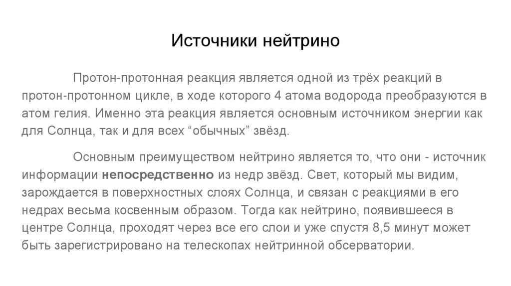 астрофизиков являются нейтрино, которые возникают при протон-протонной