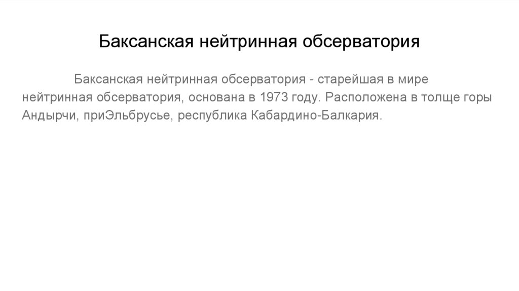 Баксанская нейтринная обсерваторияБаксанская нейтринная обсерватория - старейшая в мире