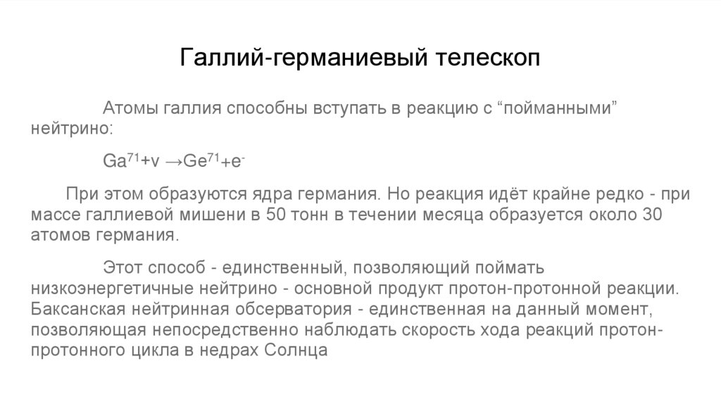 Галлий-германиевый телескопАтомы галлия способны вступать в реакцию с “пойманными”