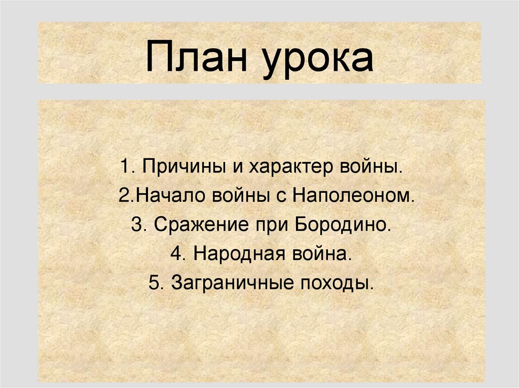 План урока1. Причины и характер войны.