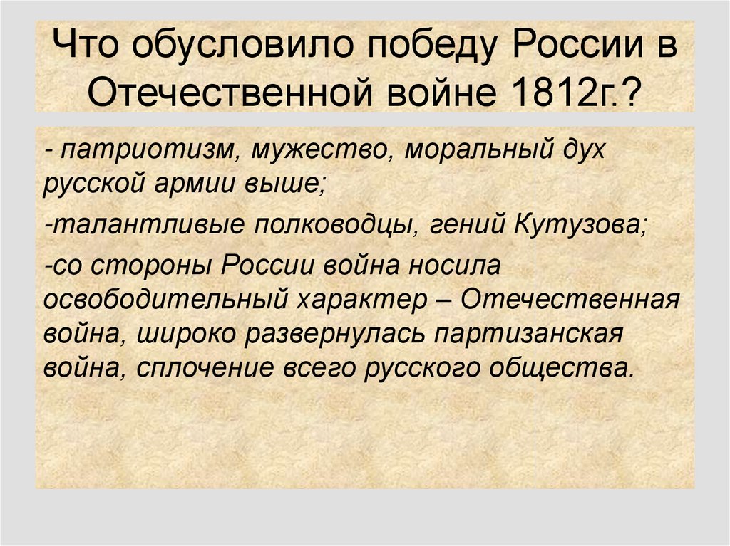 Что обусловило победу России вОтечественной войне 1812г.?
