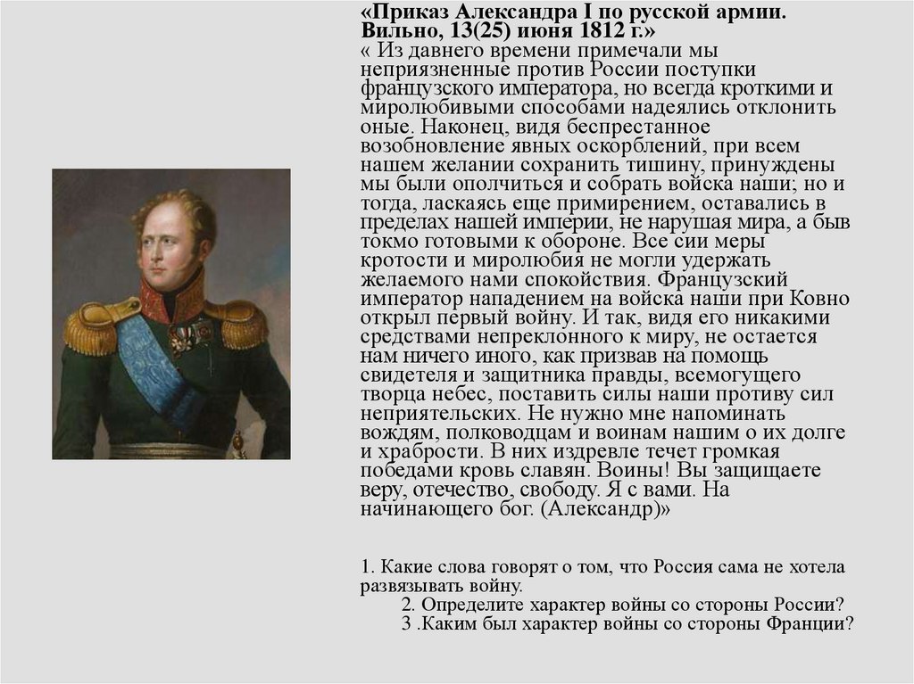«Приказ Александра I по русской армии.Вильно, 13(25) июня 1812 г.»