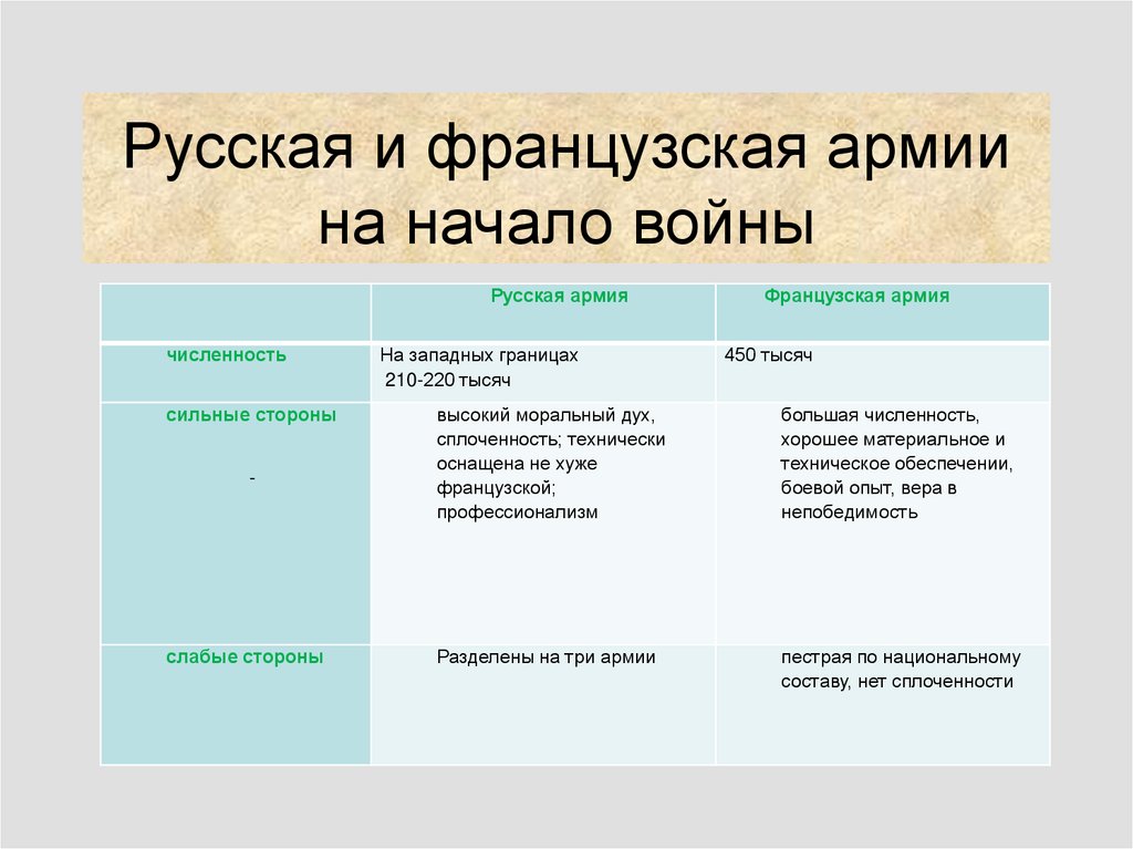 Русская и французская армиина начало войны