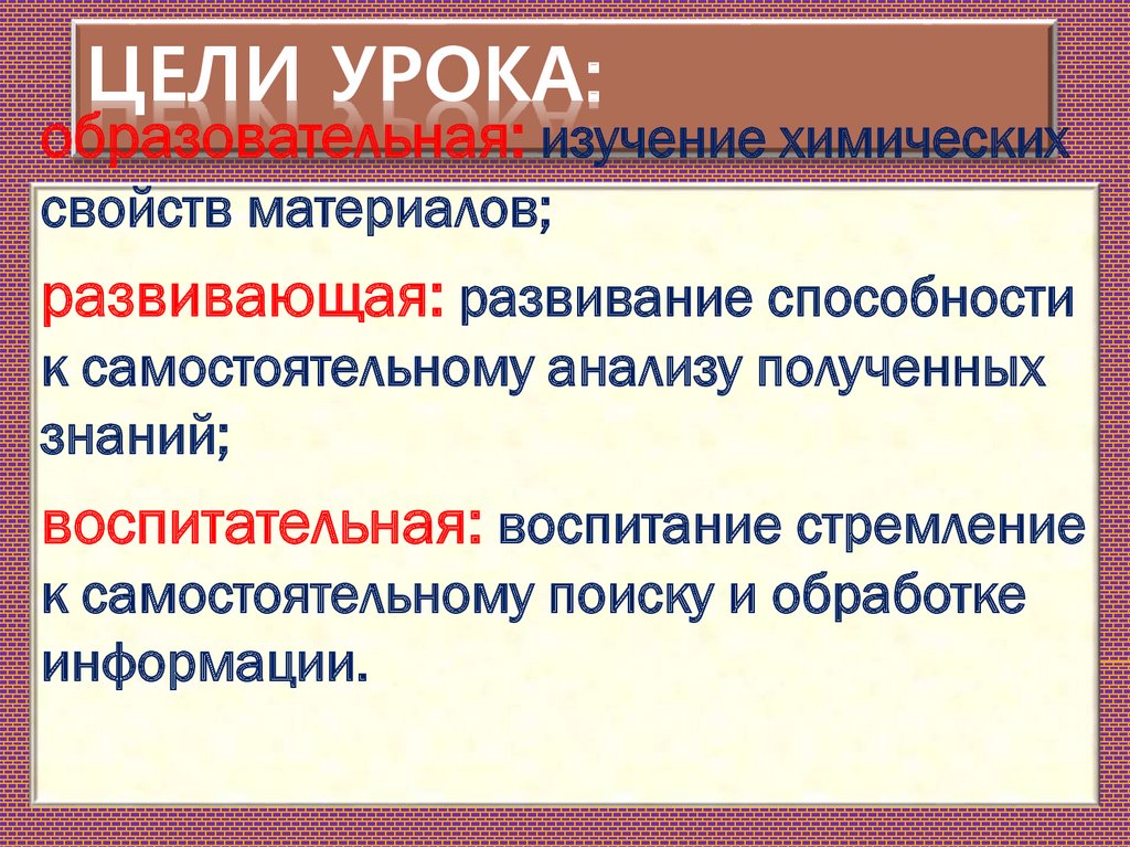 ЦЕЛИ УРОКА:образовательная: изучение химических