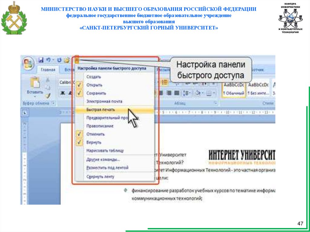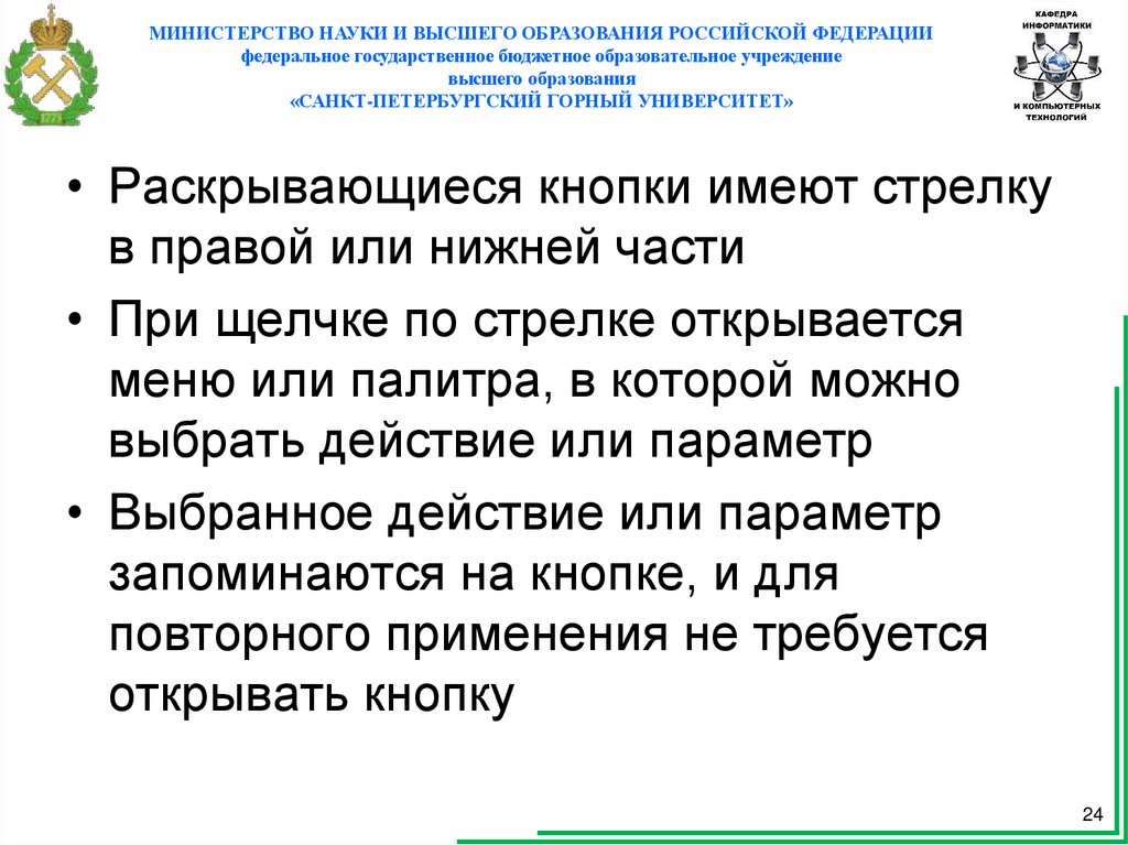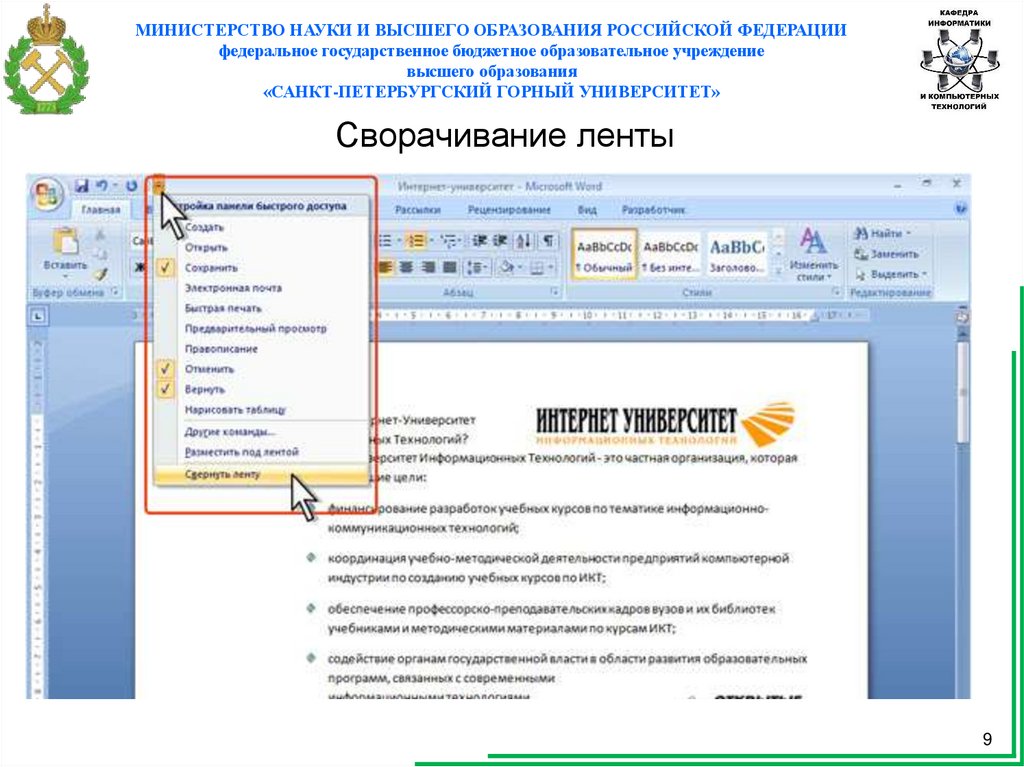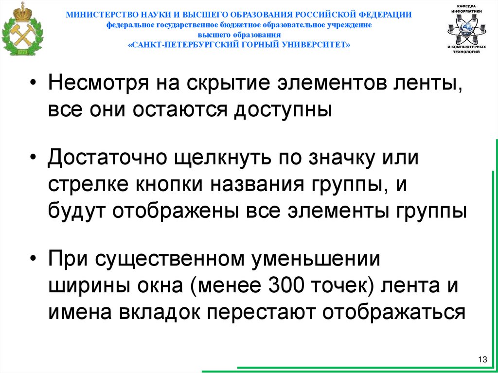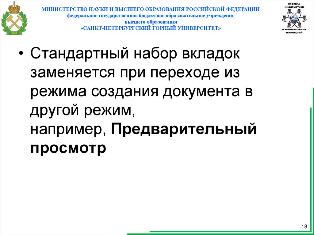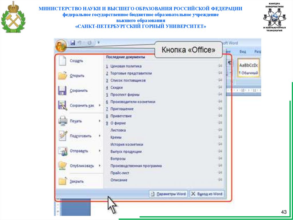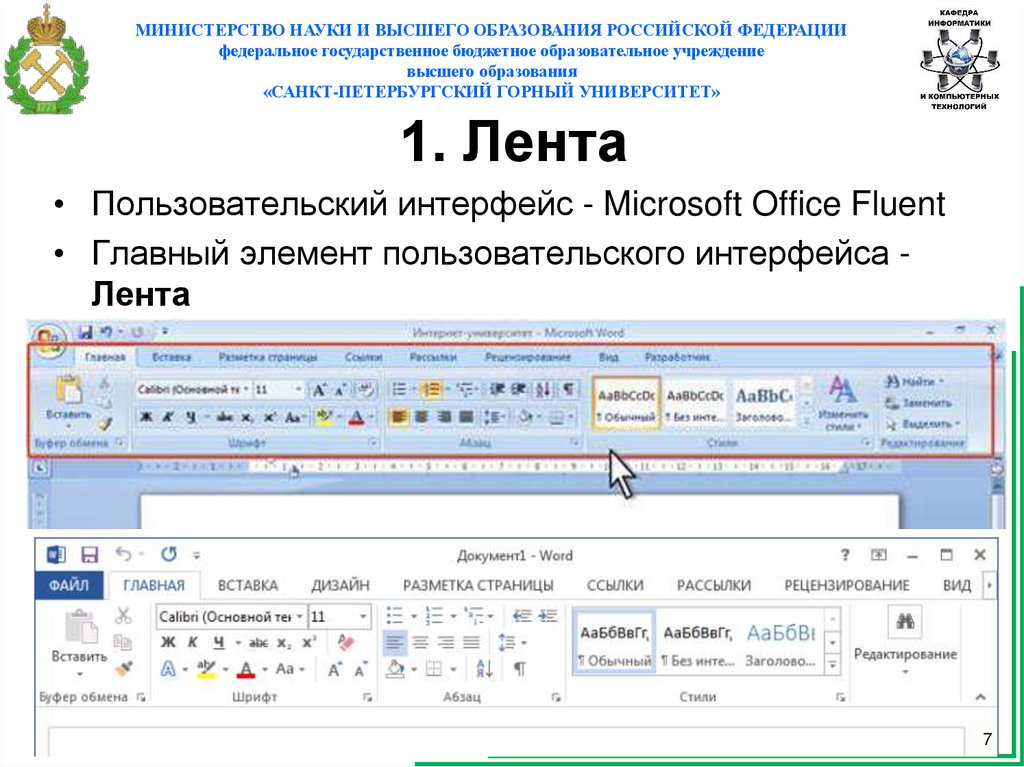 • Пользовательский интерфейс - Microsoft Office Fluent