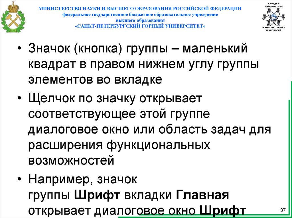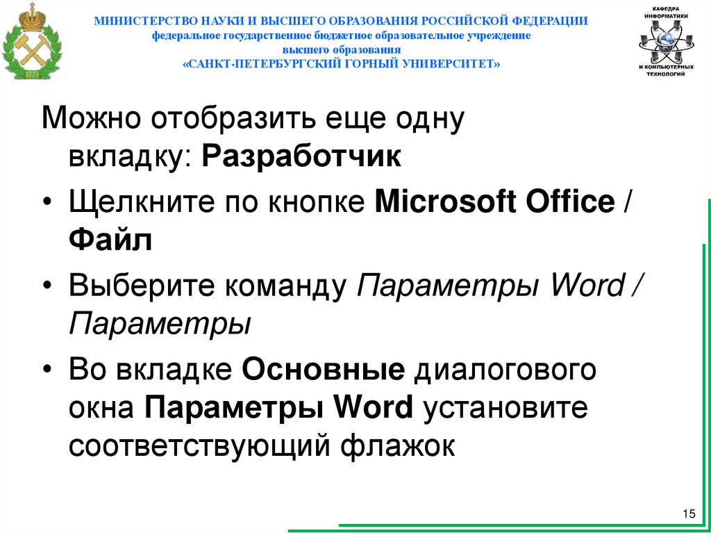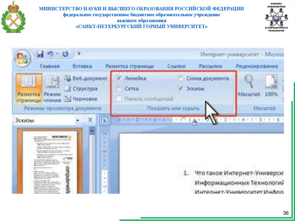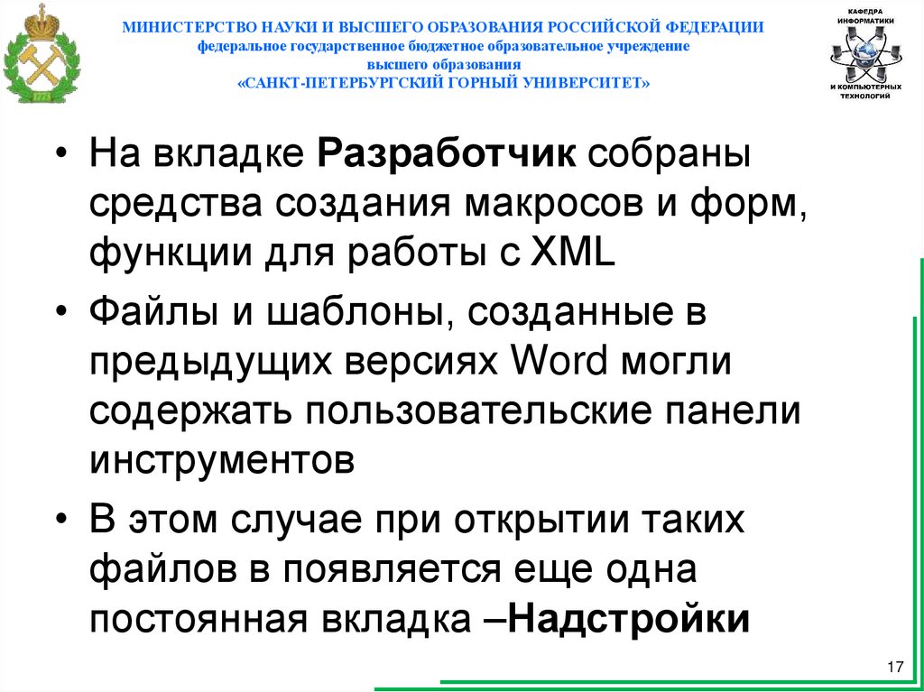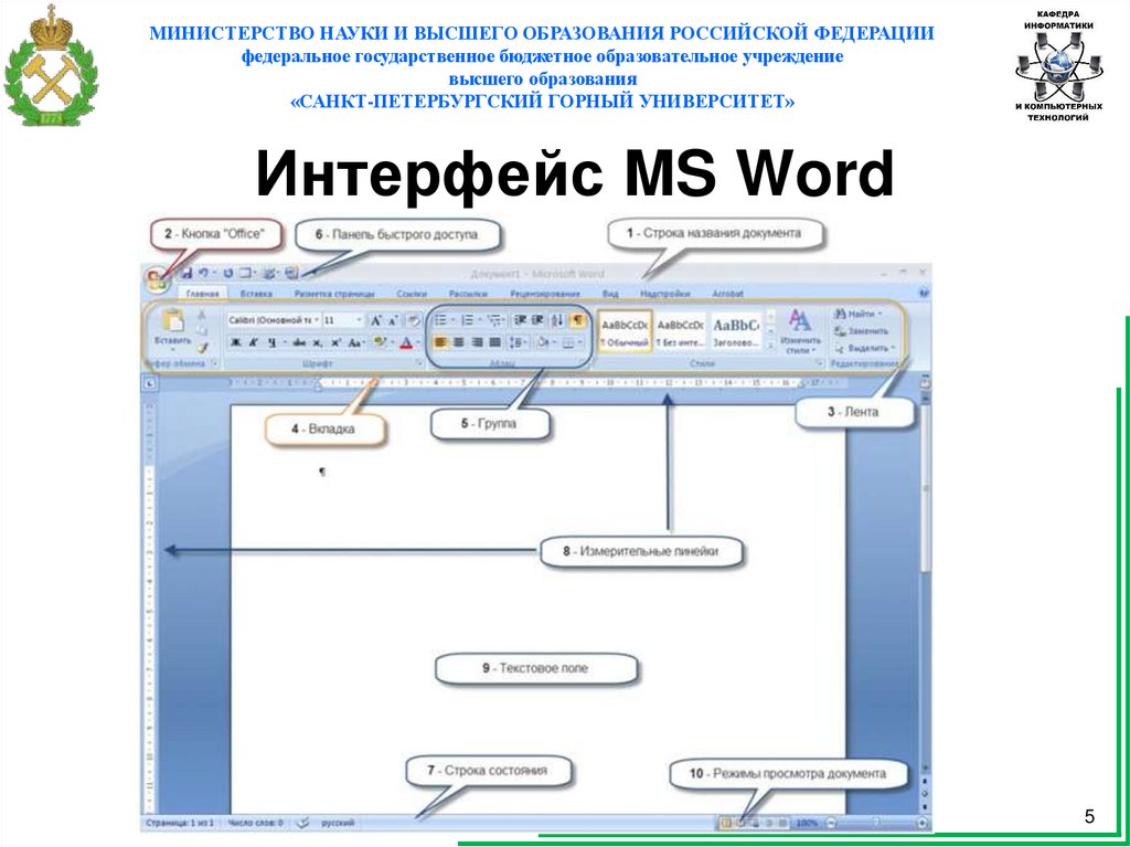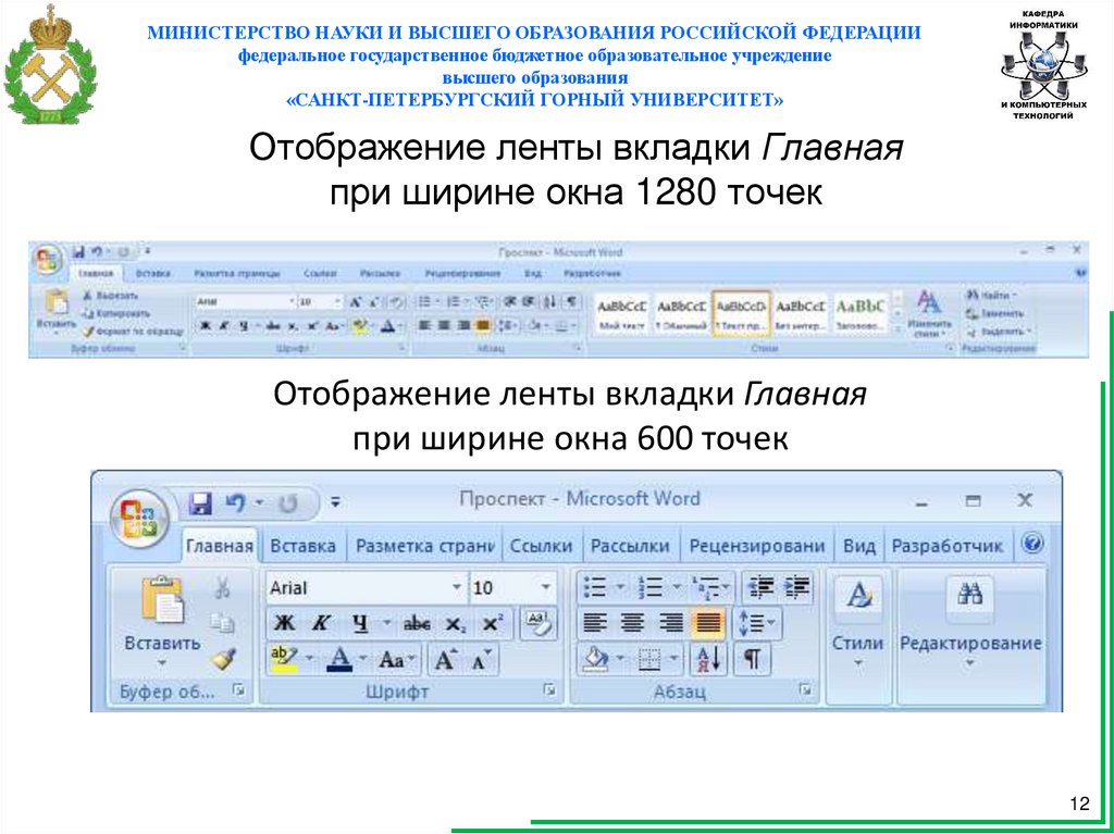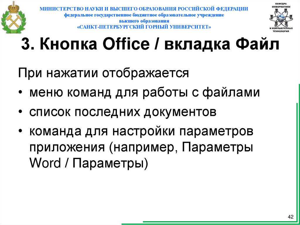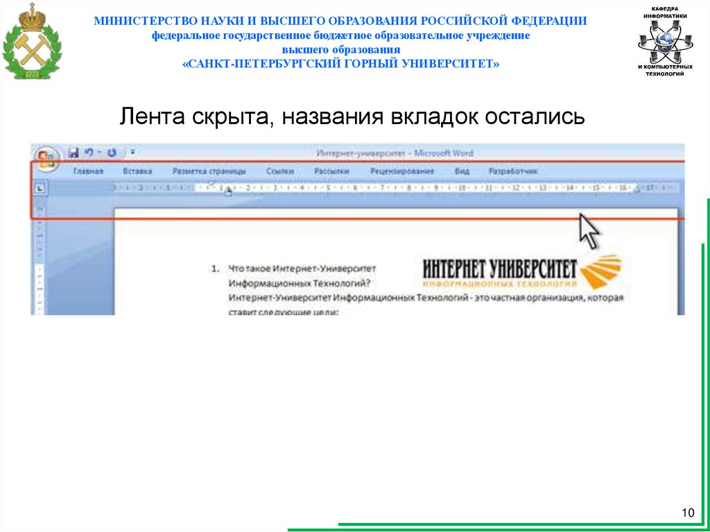 • Пользовательский интерфейс - Microsoft Office Fluent