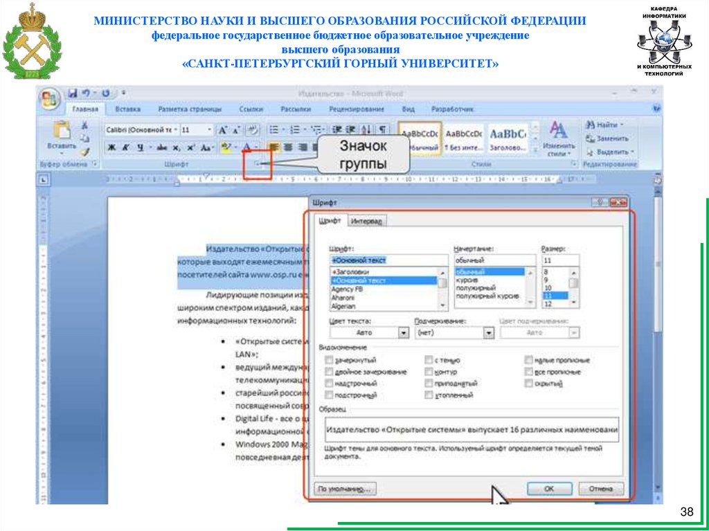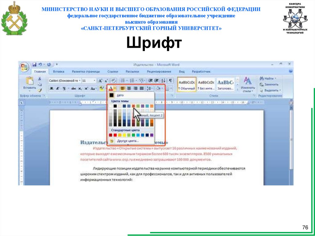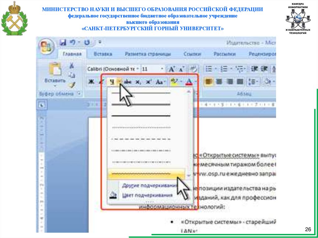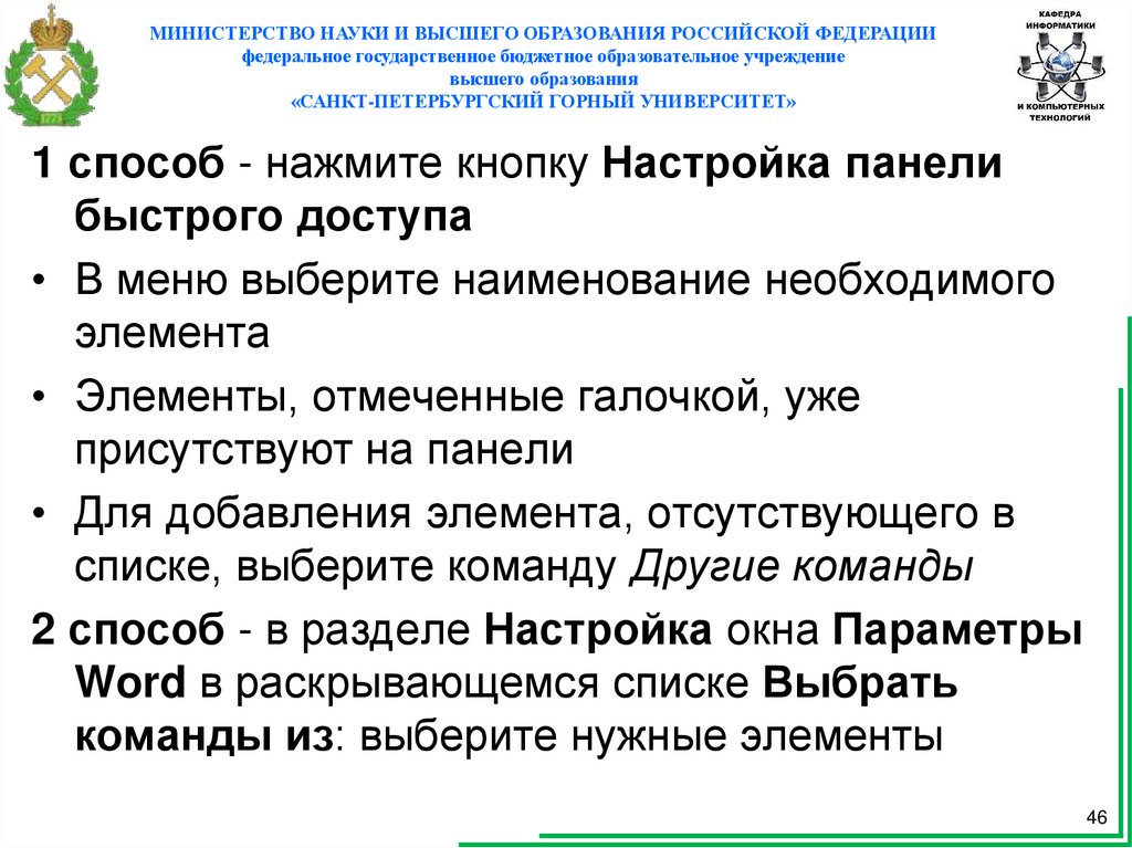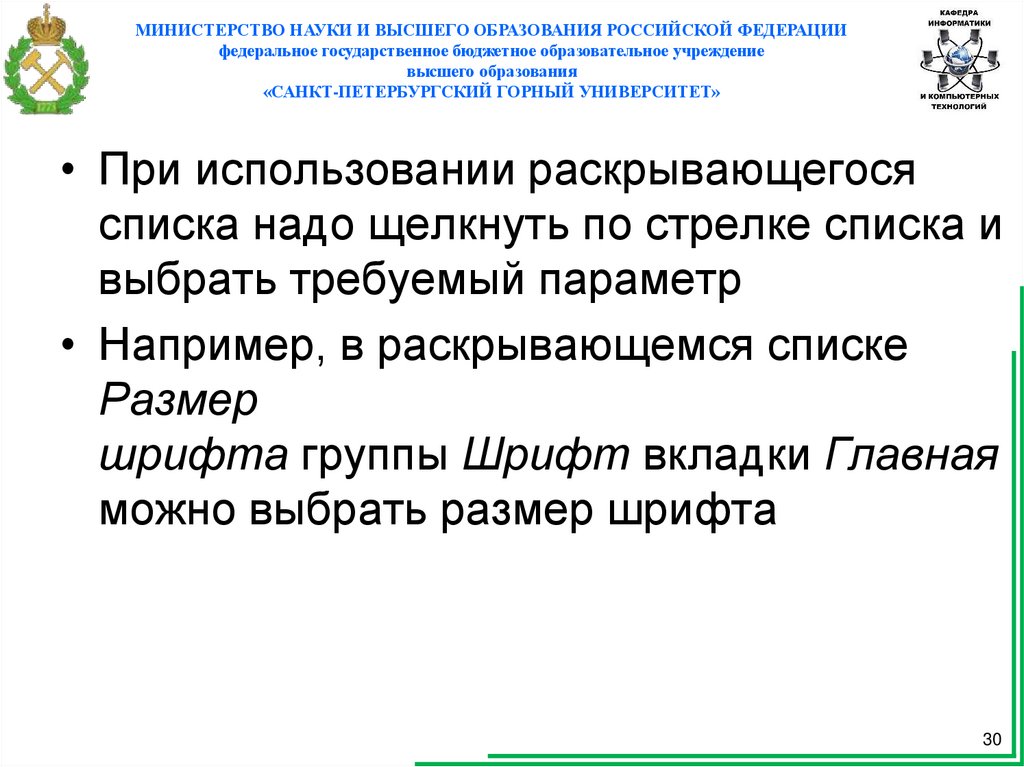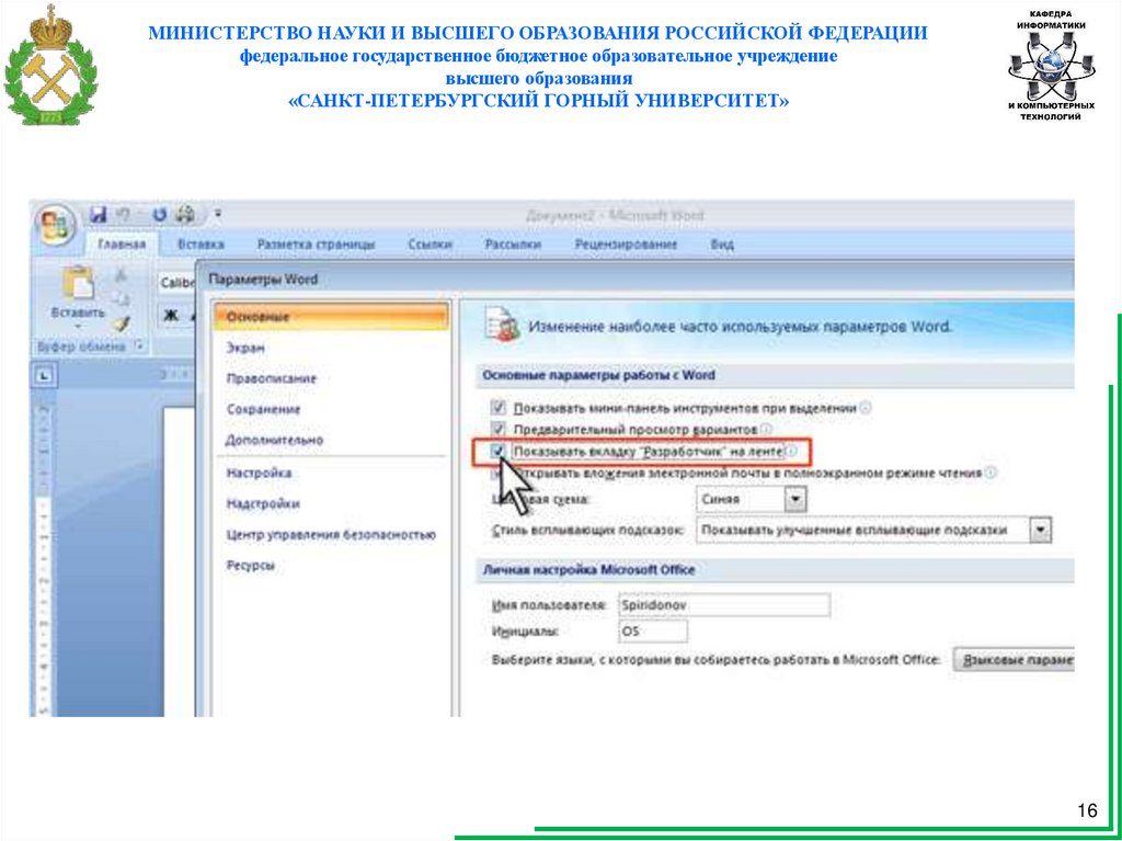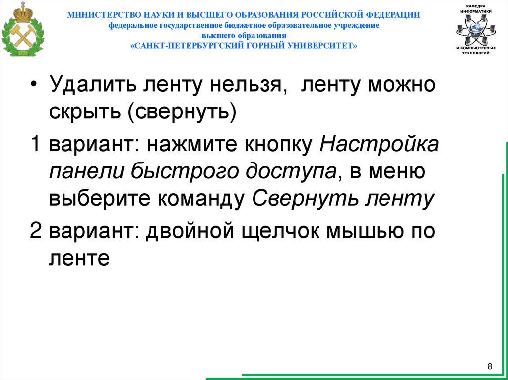 • Пользовательский интерфейс - Microsoft Office Fluent