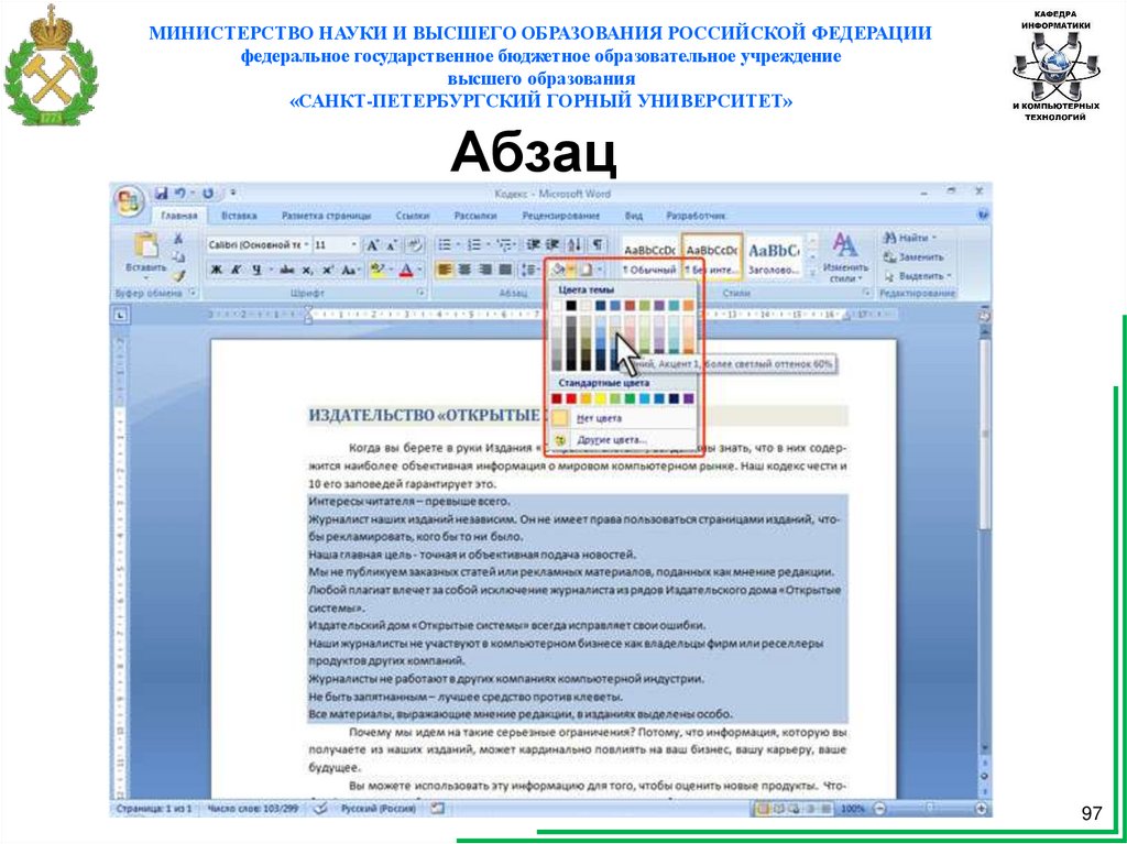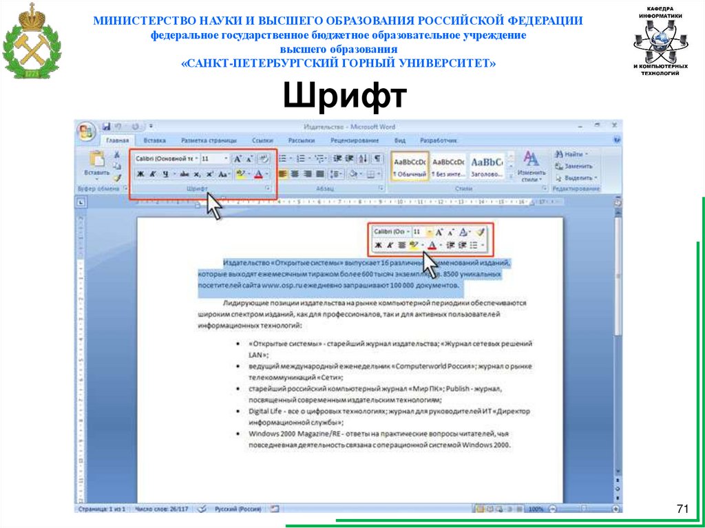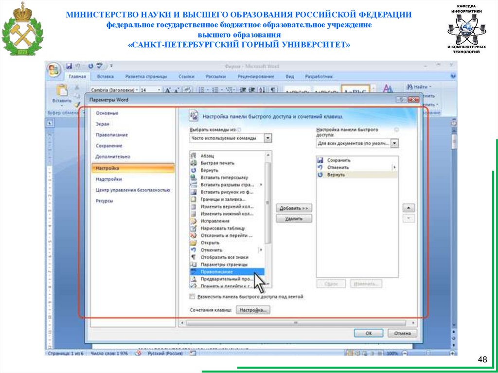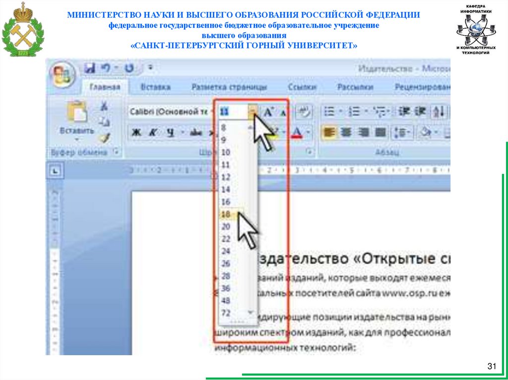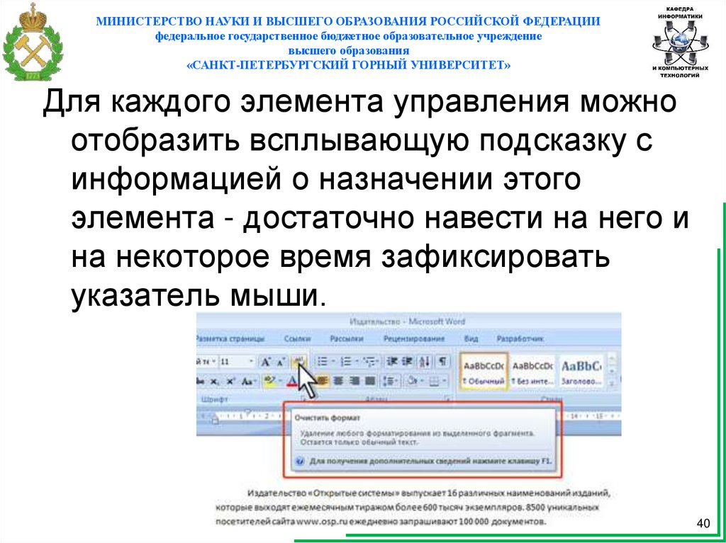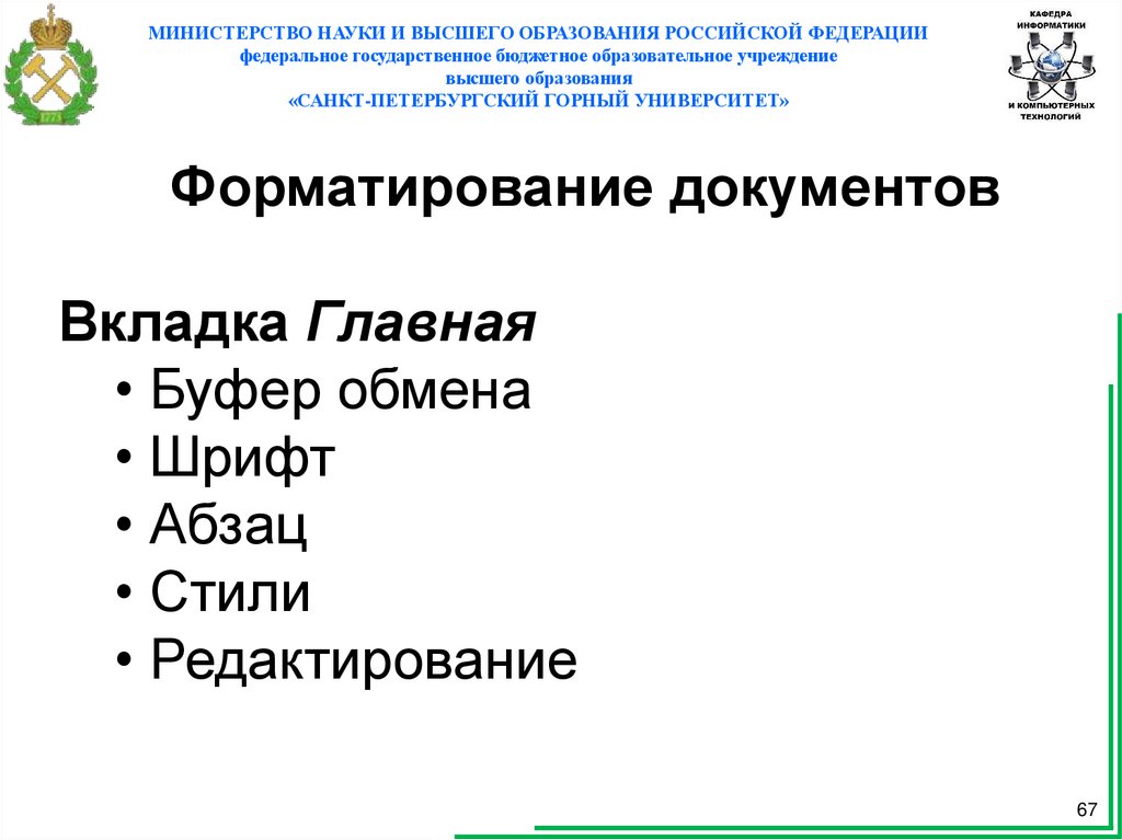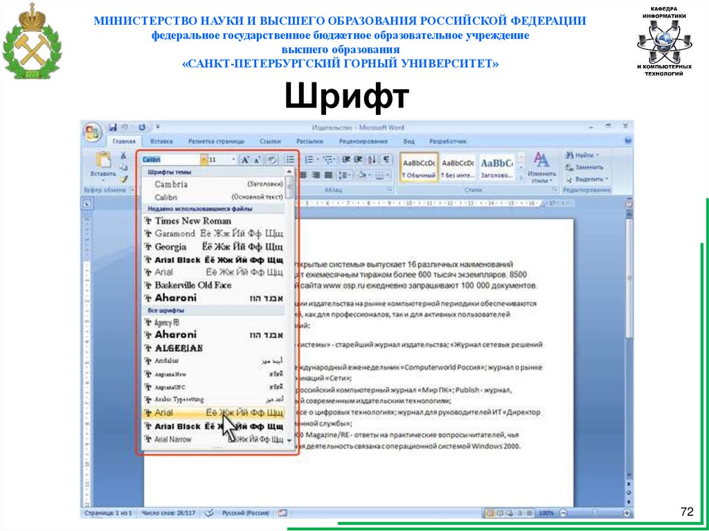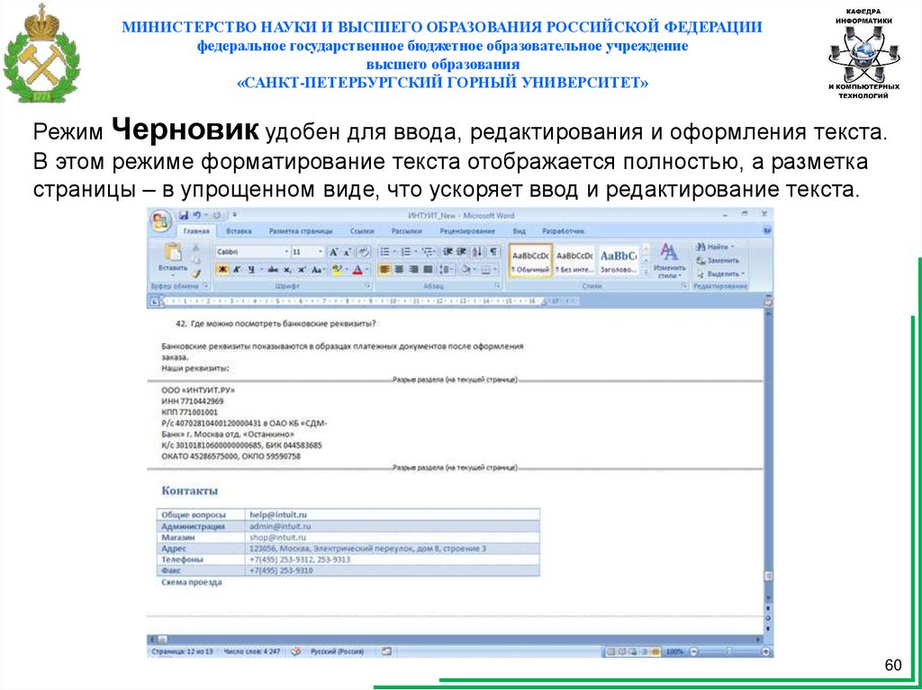 • Пользовательский интерфейс - Microsoft Office Fluent