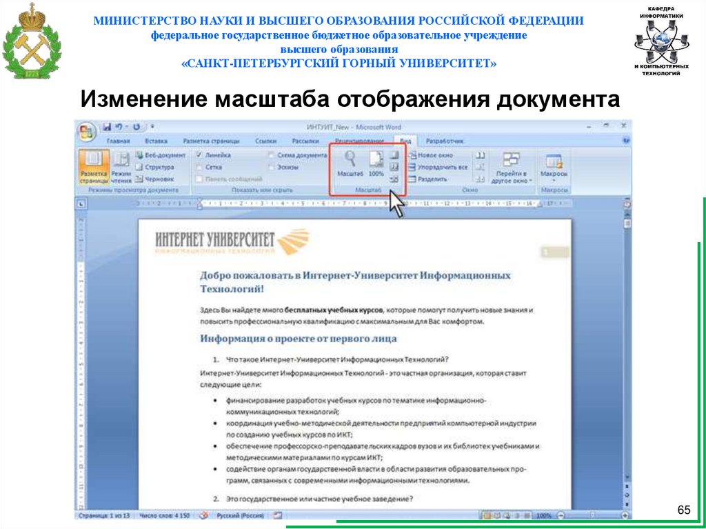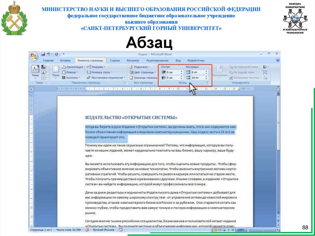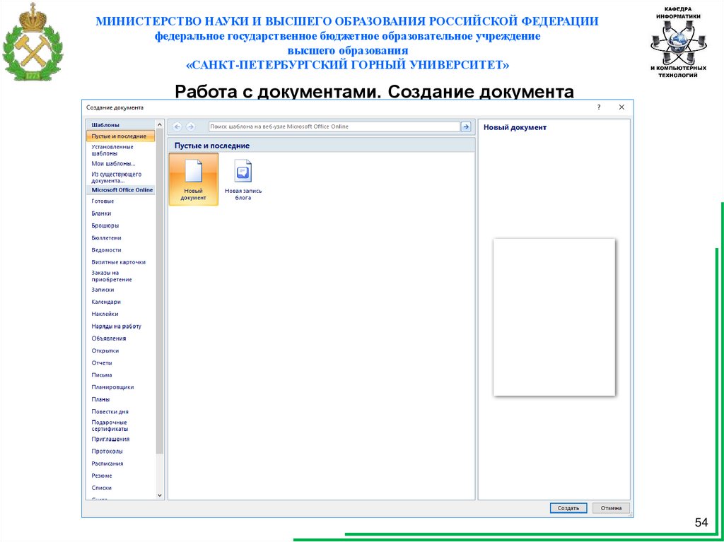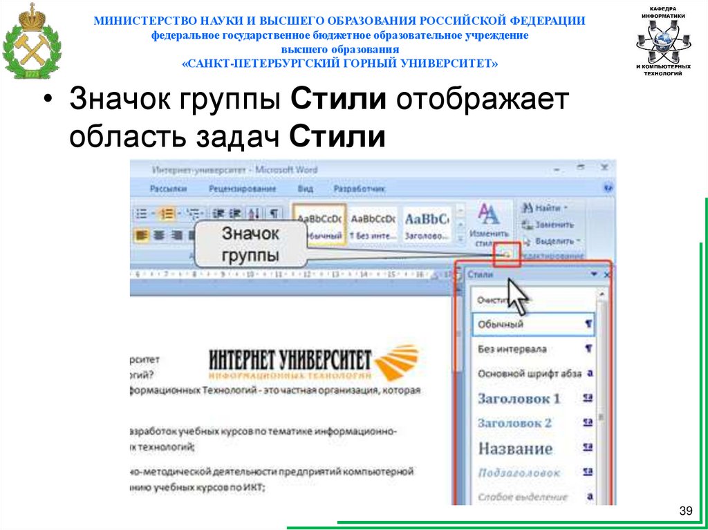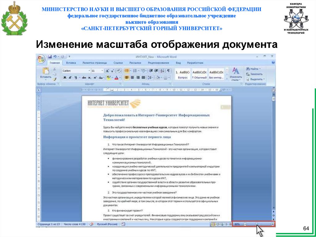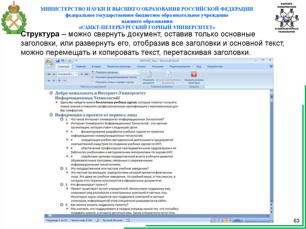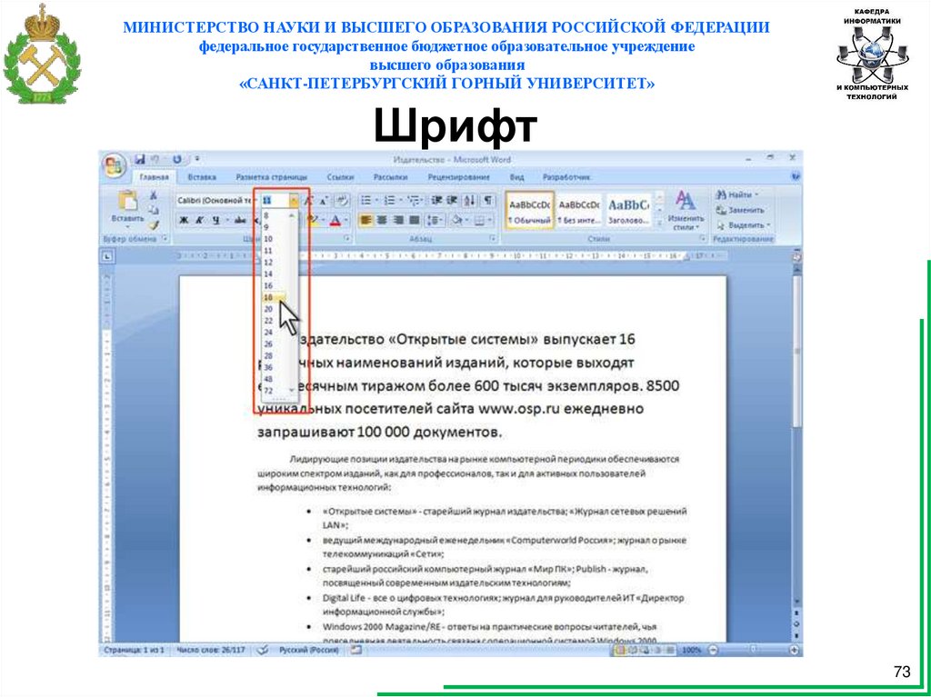 • Пользовательский интерфейс - Microsoft Office Fluent