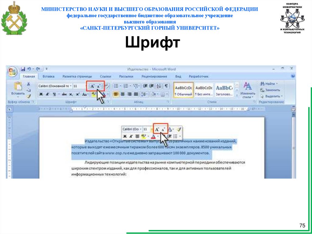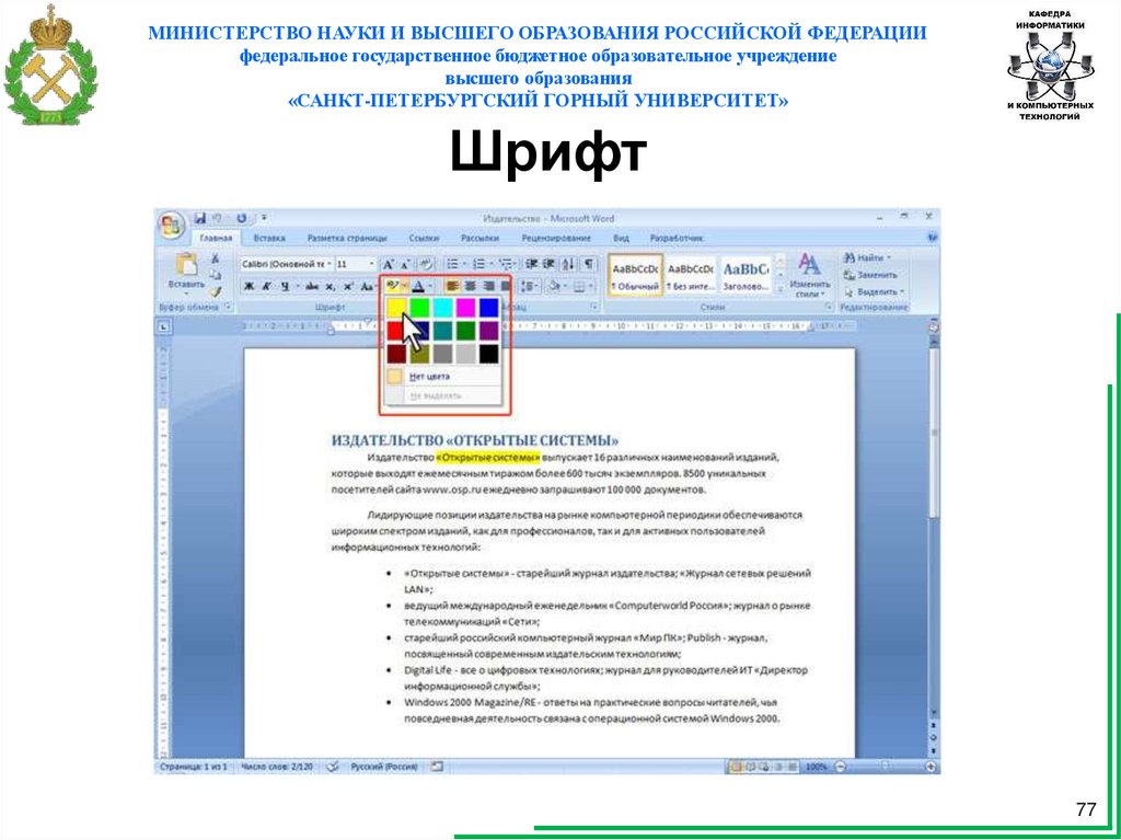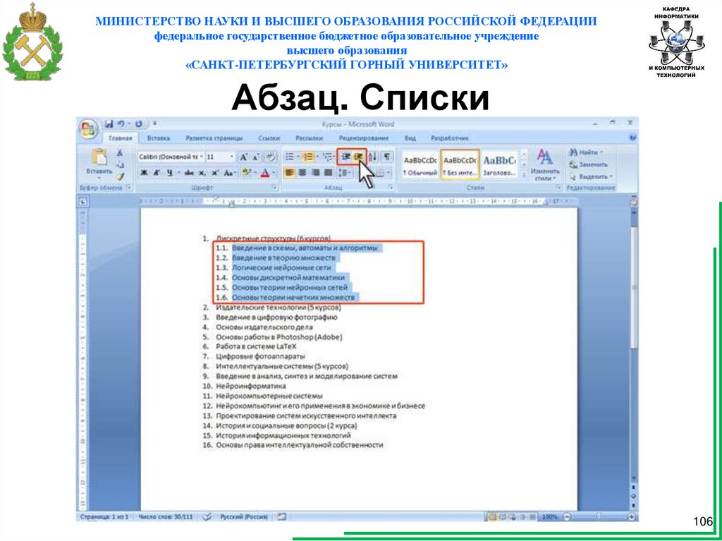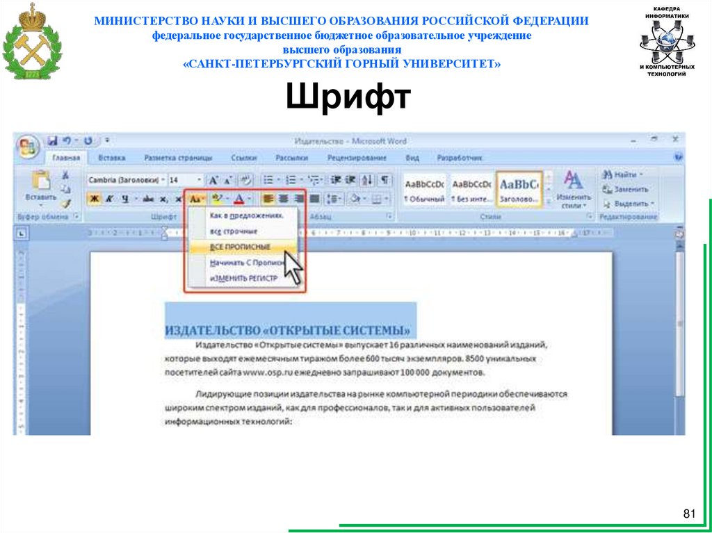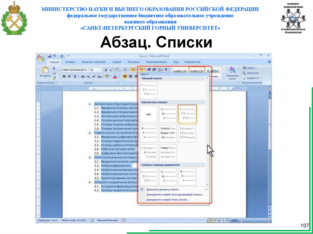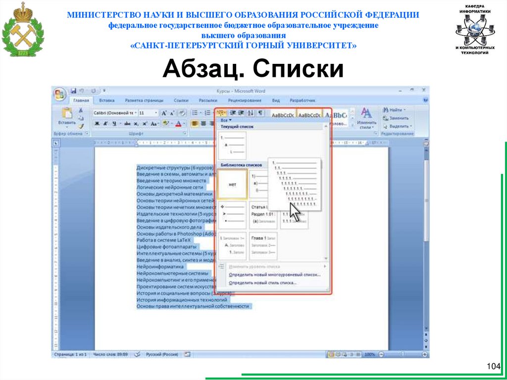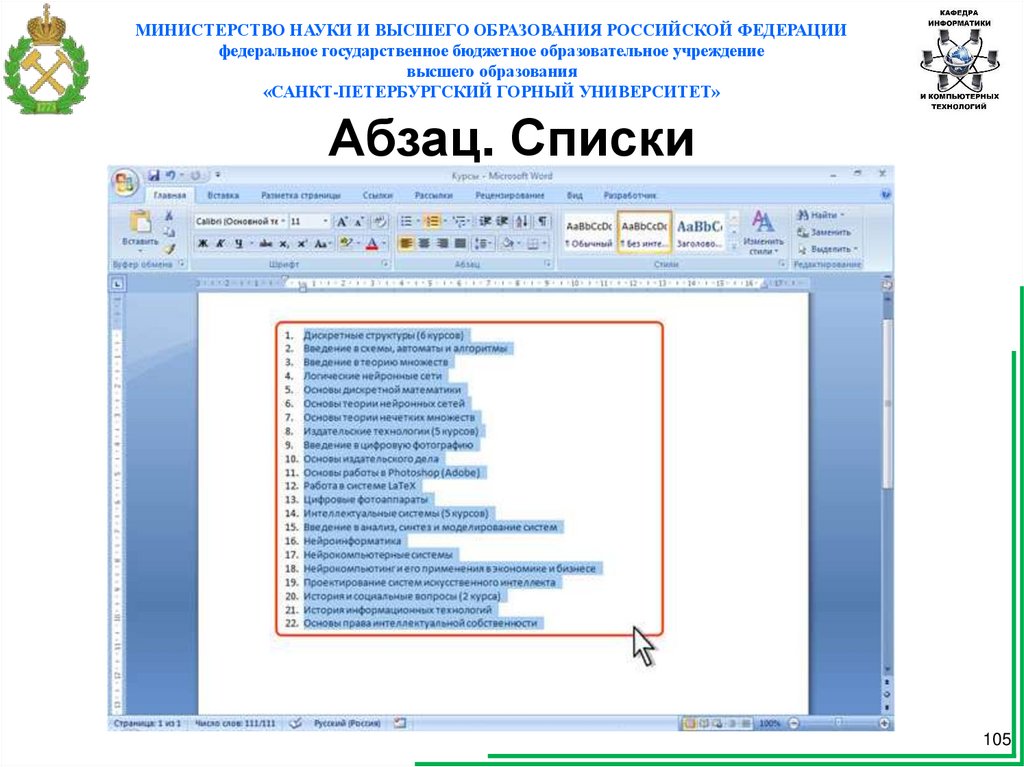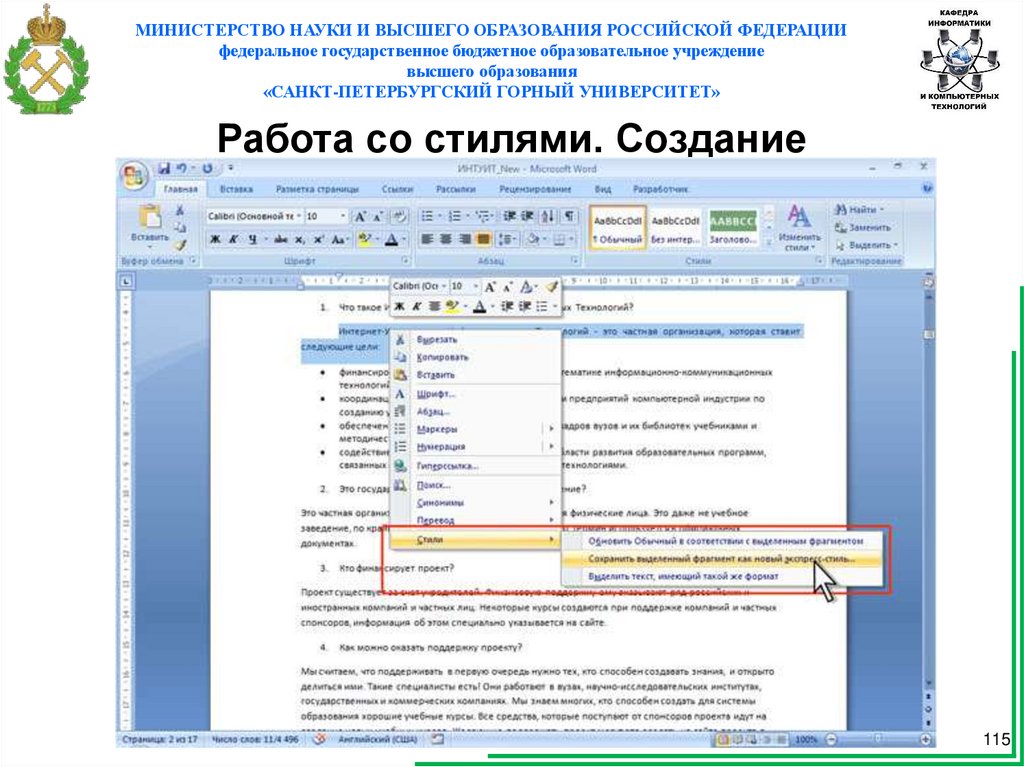 • Пользовательский интерфейс - Microsoft Office Fluent