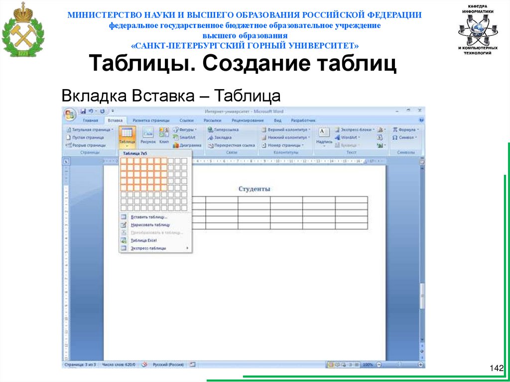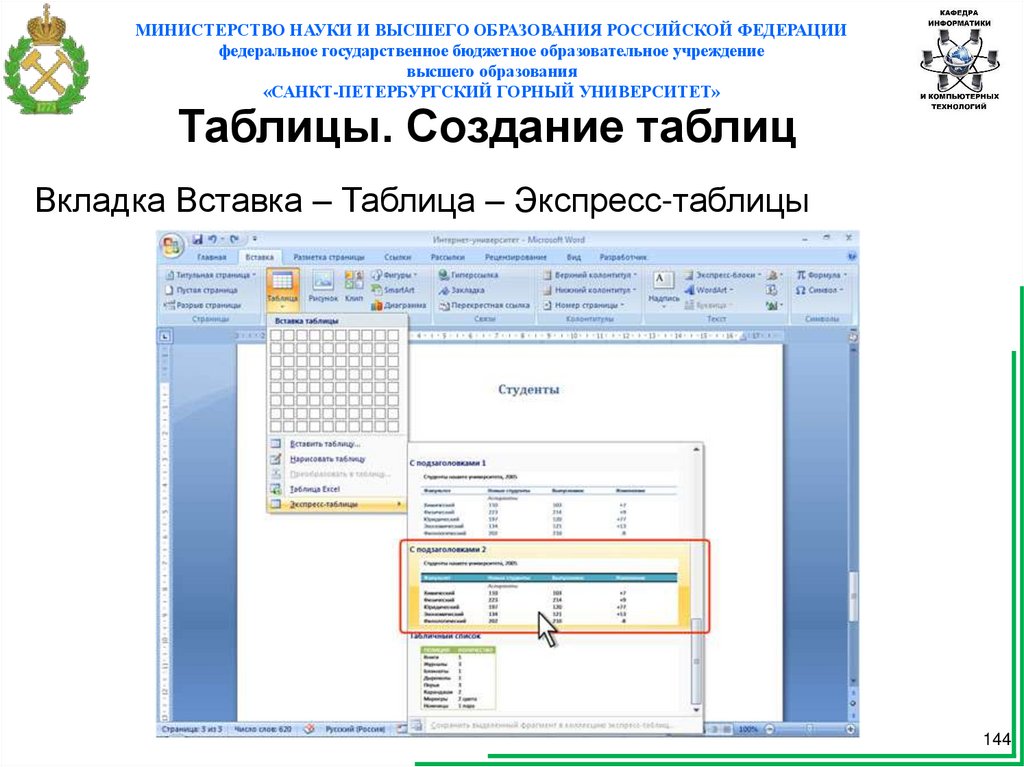 Вкладка Вставка – Таблица – Экспресс-таблицы