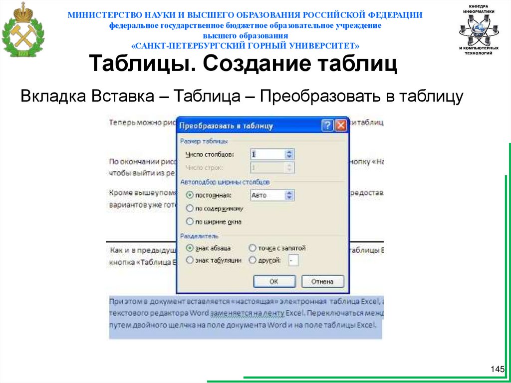Вкладка Вставка – Таблица – Преобразовать в таблицу