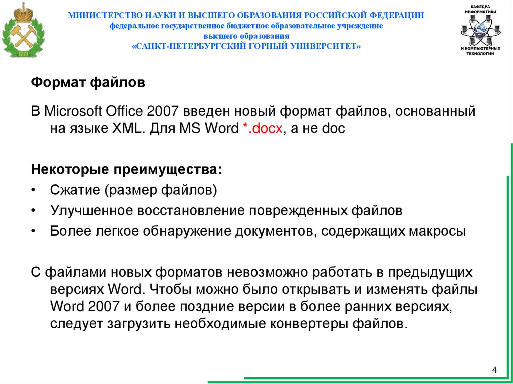 В Microsoft Office 2007 введен новый формат файлов, основанный