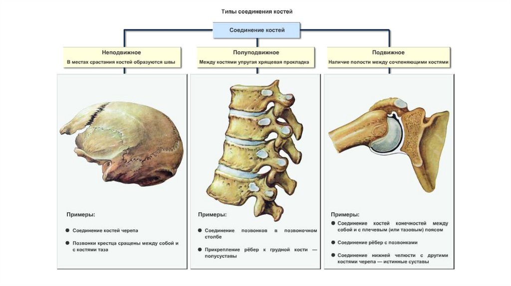 Виды соединения костей. Строение скелета человека