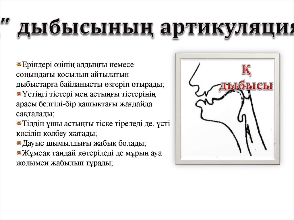 Еріндері дыбыстың шығуына қатыспайжатады;
