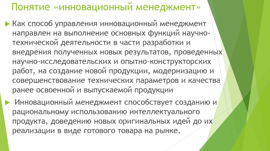 Понятие «инновационный менеджмент»Инновационный менеджмент как наука управления
