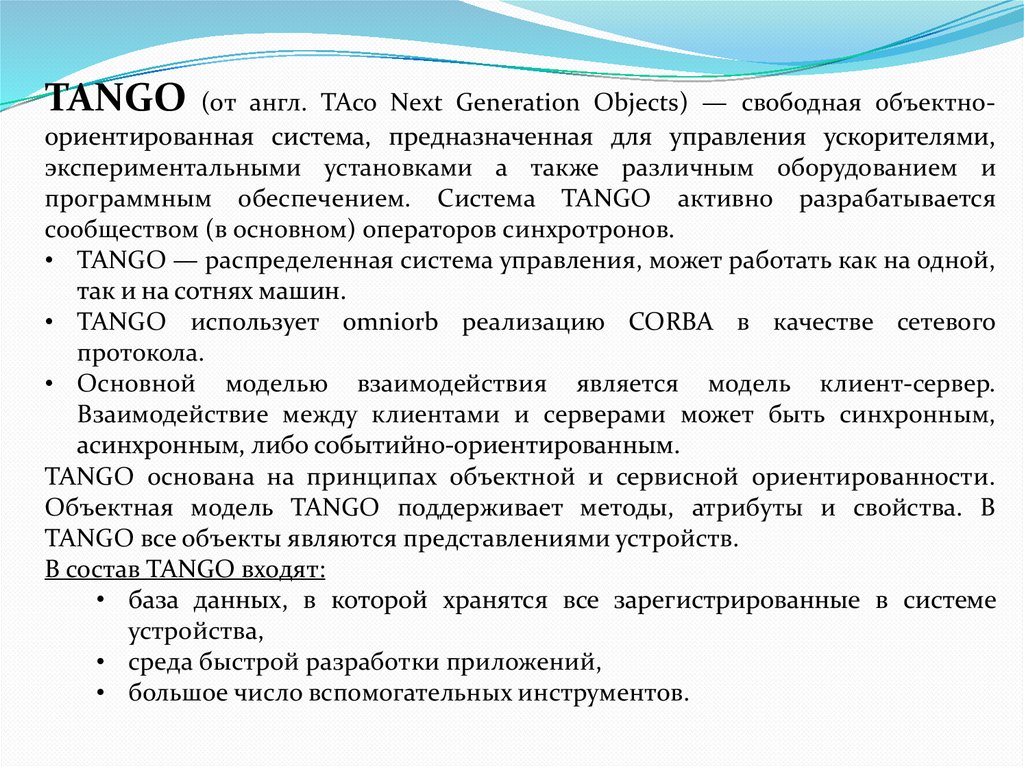 TANGO - (от англ. TAco Next Generation Objects) Свободная распределенная система управления