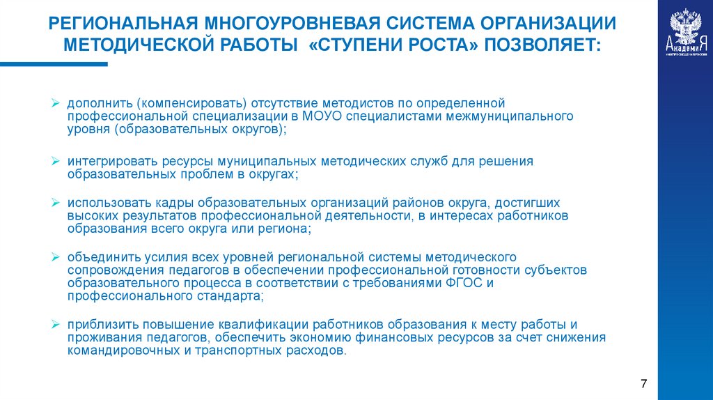 РЕГИОНАЛЬНАЯ МНОГОУРОВНЕВАЯ СИСТЕМА ОРГАНИЗАЦИИМЕТОДИЧЕСКОЙ РАБОТЫ «СТУПЕНИ РОСТА» ПОЗВОЛЯЕТ: