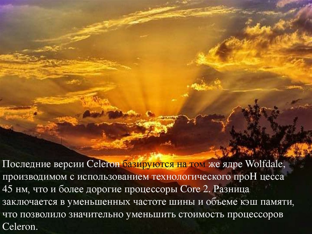 Последние версии Celeron базируются на том же ядре Wolfdale,производимом с использованием технологического проH цесса