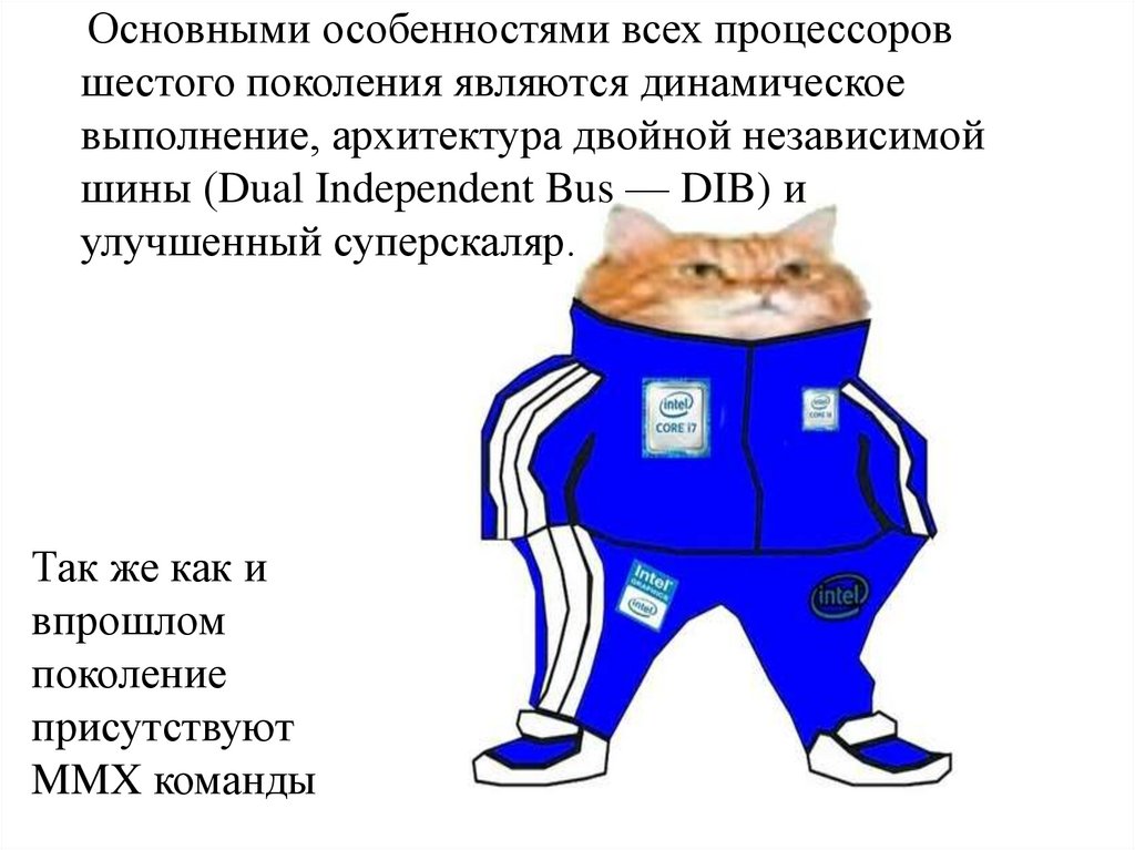 Основными особенностями всех процессоровшестого поколения являются динамическое