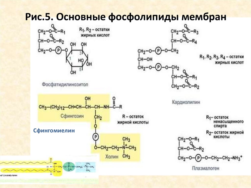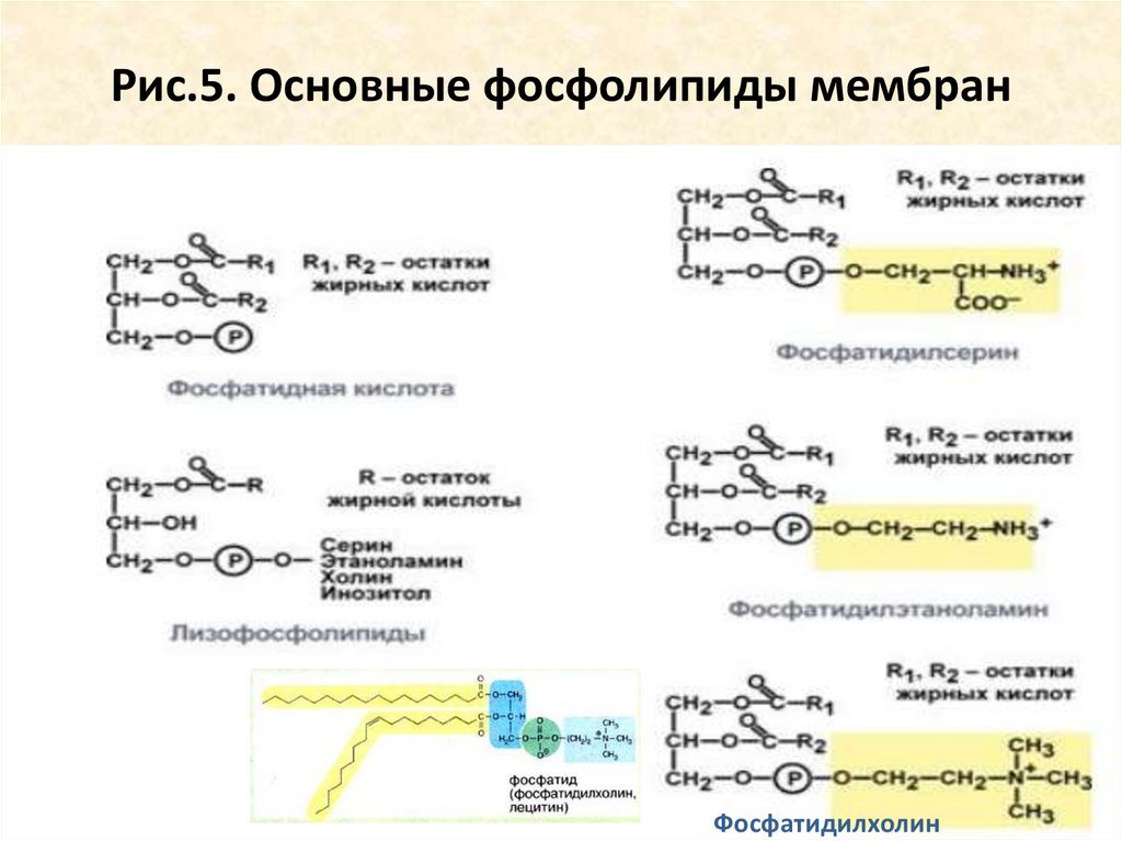 Рис.5. Основные фосфолипиды мембранФосфатидилхолин