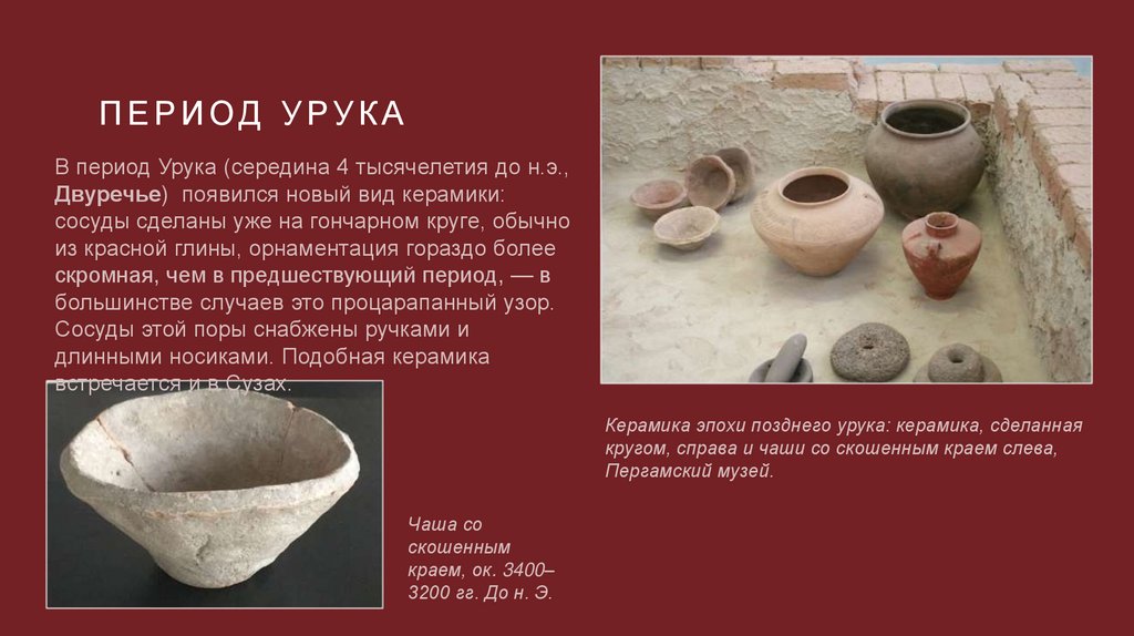 ПЕРИОД УРУКАВ период Урука (середина 4 тысячелетия до н.э.,