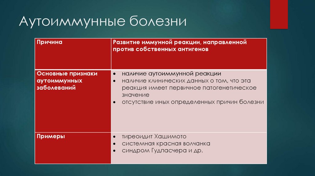 Аутоиммунные болезниПричина