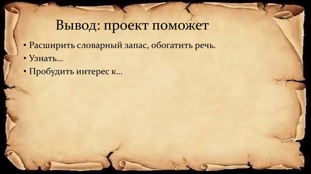 Вывод: проект поможет• Расширить словарный запас, обогатить речь.