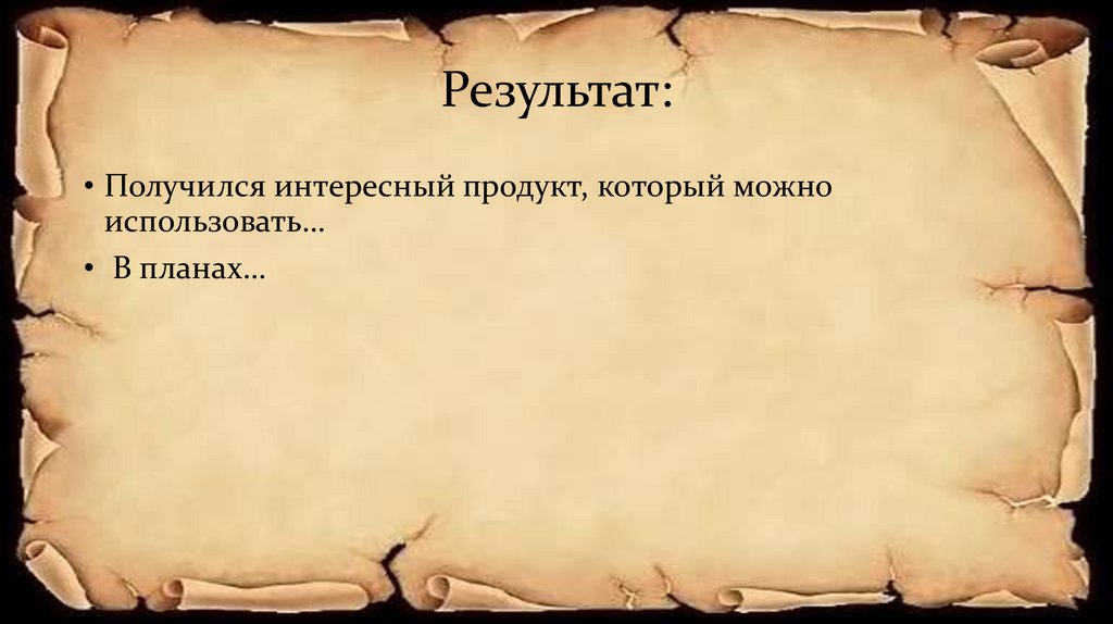 Результат:• Получился интересный продукт, который можно