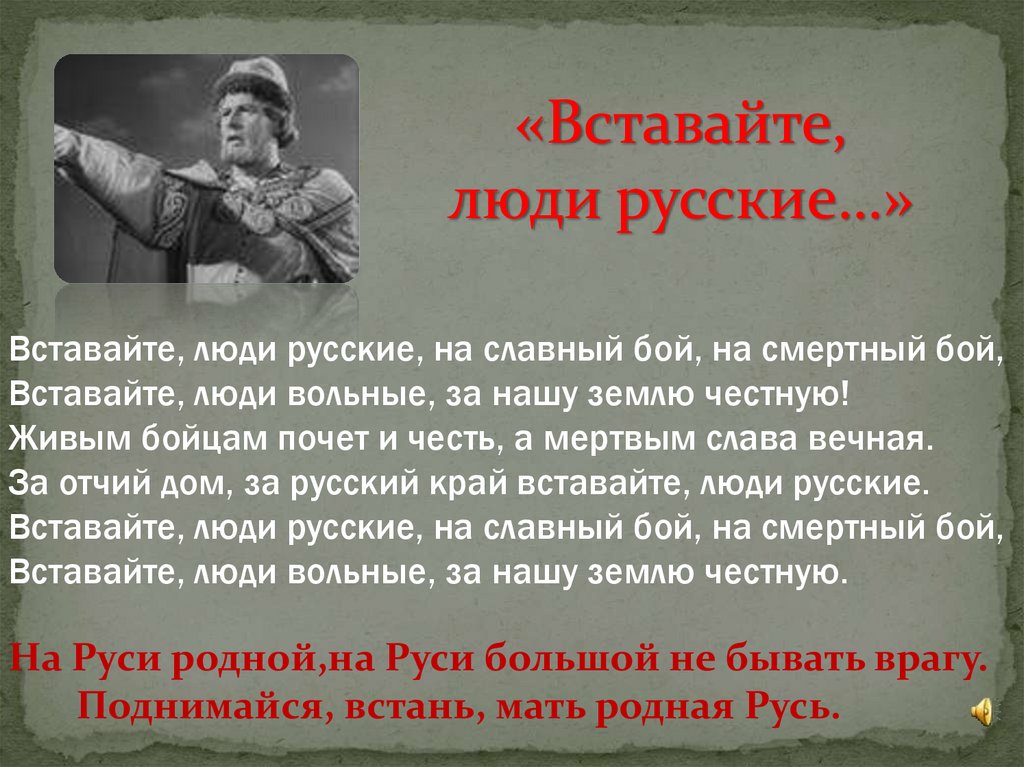 Вставайте, люди русские, на славный бой, на смертный бой,