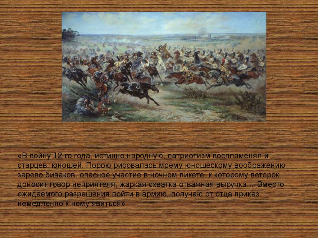 «В войну 12-го года, истинно народную, патриотизм воспламенял истарцев, юношей. Порою рисовалась моему юношескому воображению