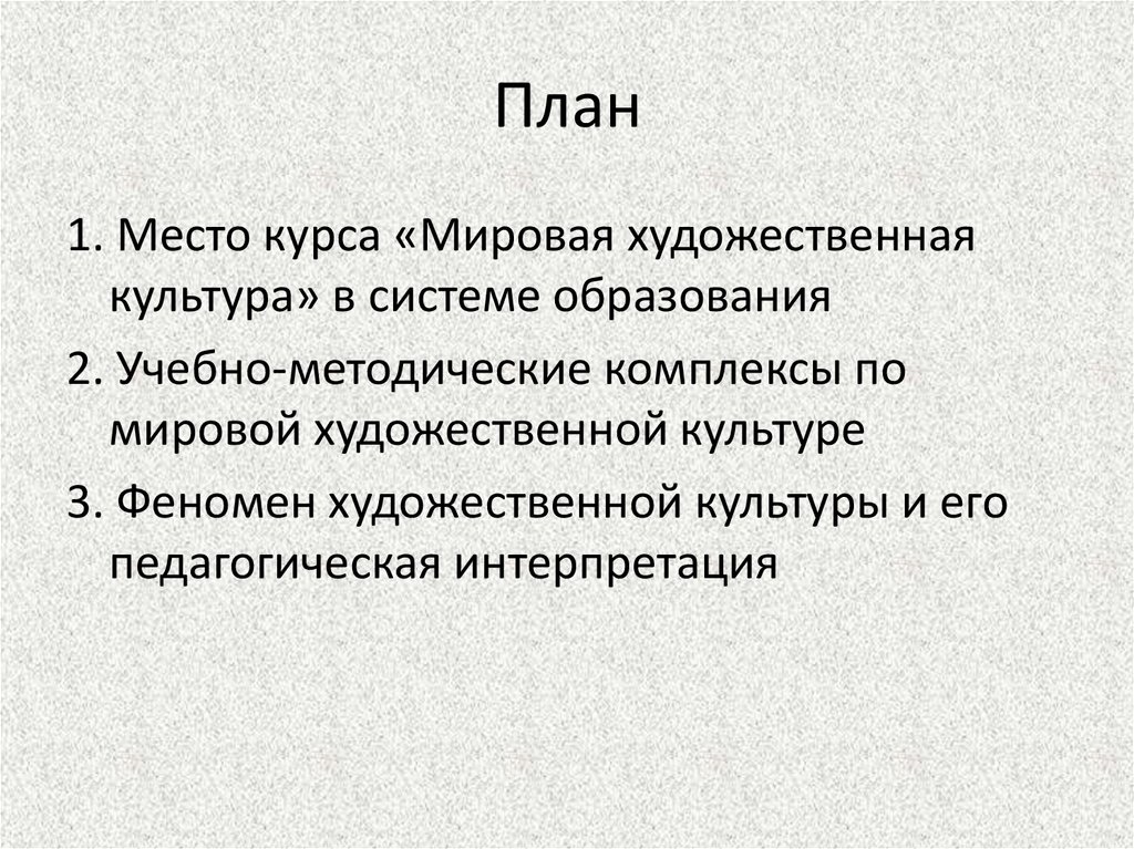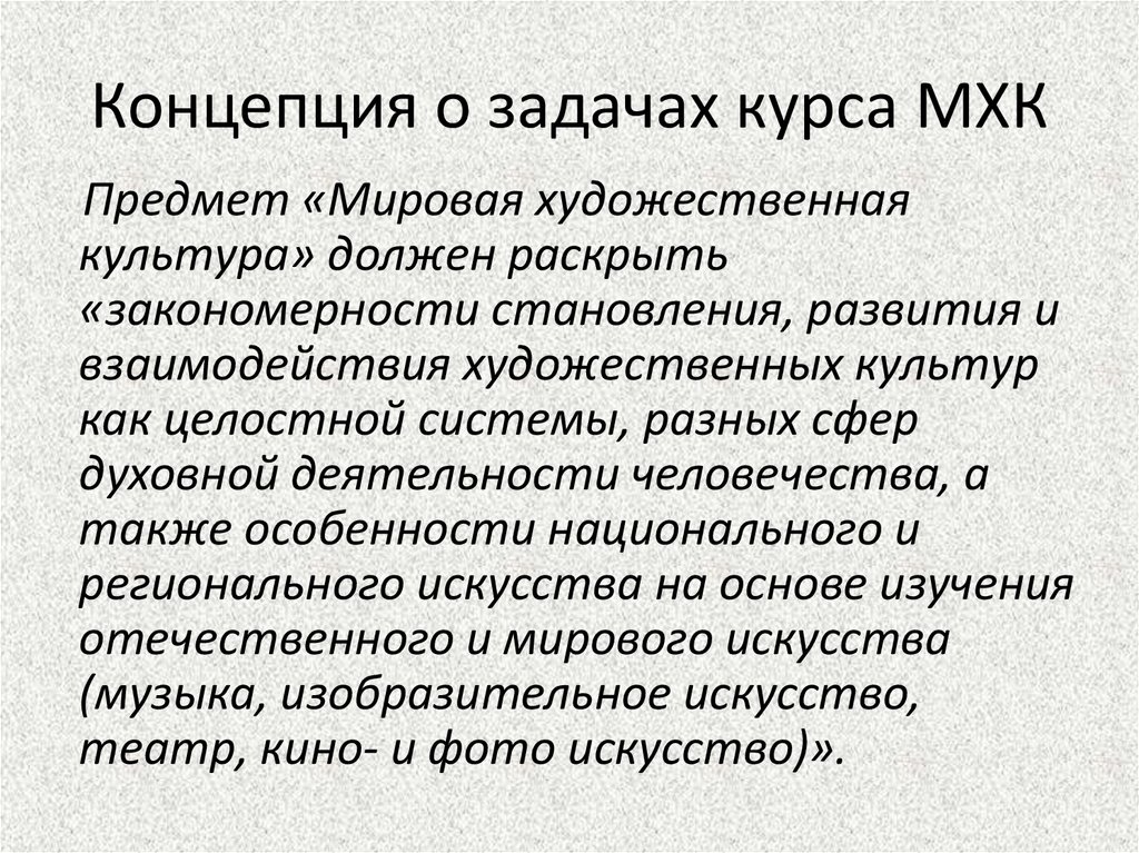 Концепция о задачах курса МХКПредмет «Мировая художественная