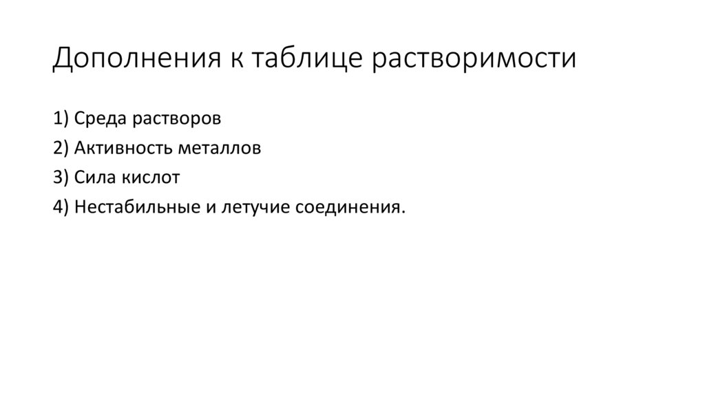 Дополнения к таблице растворимости1) Среда растворов