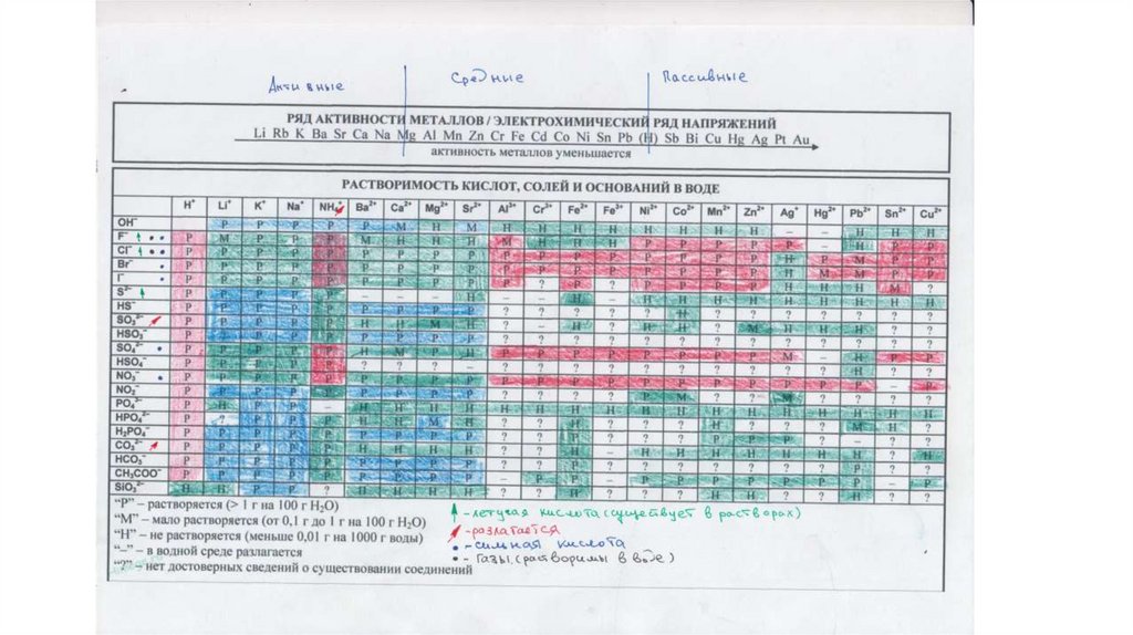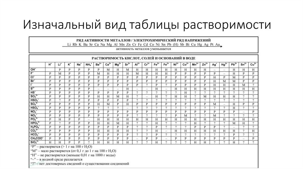 Изначальный вид таблицы растворимости5.