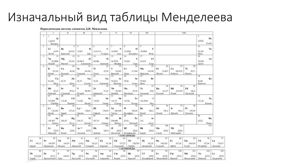 Изначальный вид таблицы Менделеева4.