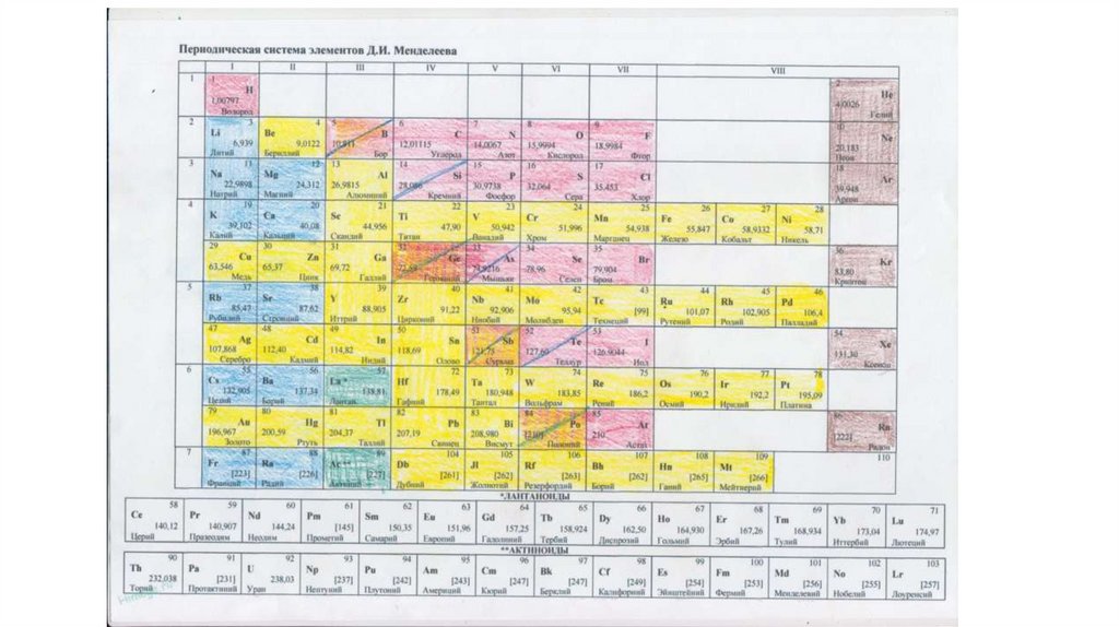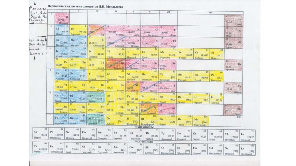 Дополнения в таблице Менделеева1) Раскрашивание на металлы, амфотерные металлы и неметаллы.
