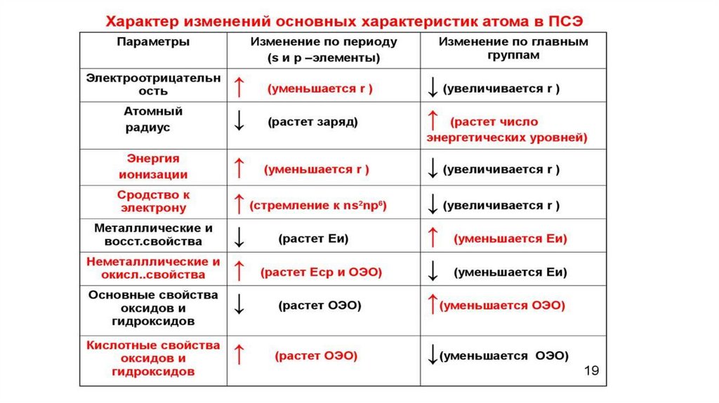 2) Закономерности изменений свойств в таблице Менделеева