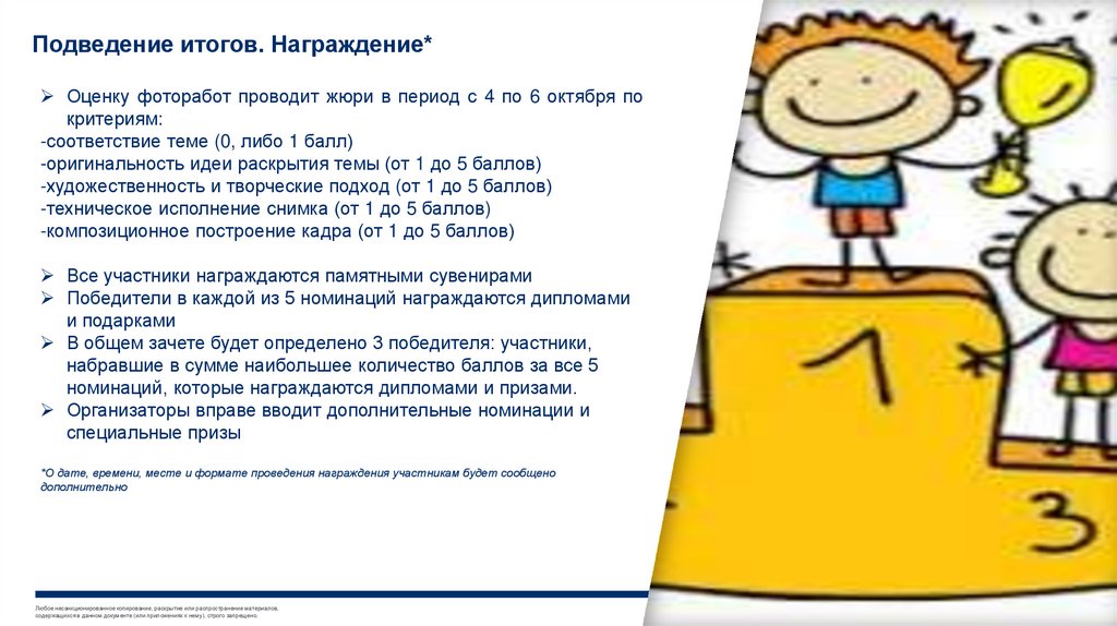 Подведение итогов. Награждение*Оценку фоторабот проводит жюри в период с 4 по 6 октября по
