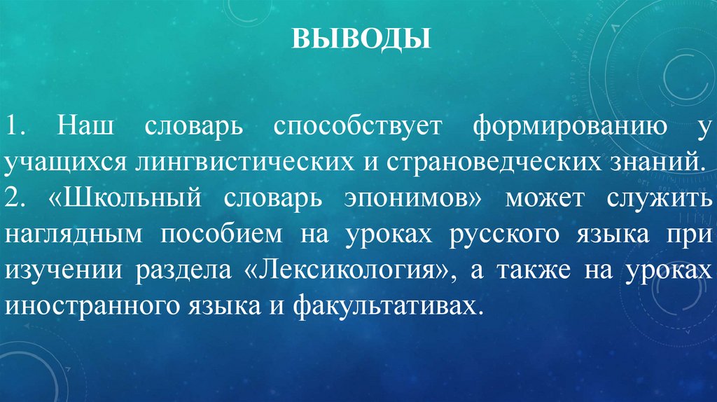 ВЫВОДЫ1. Наш словарь способствует формированию у