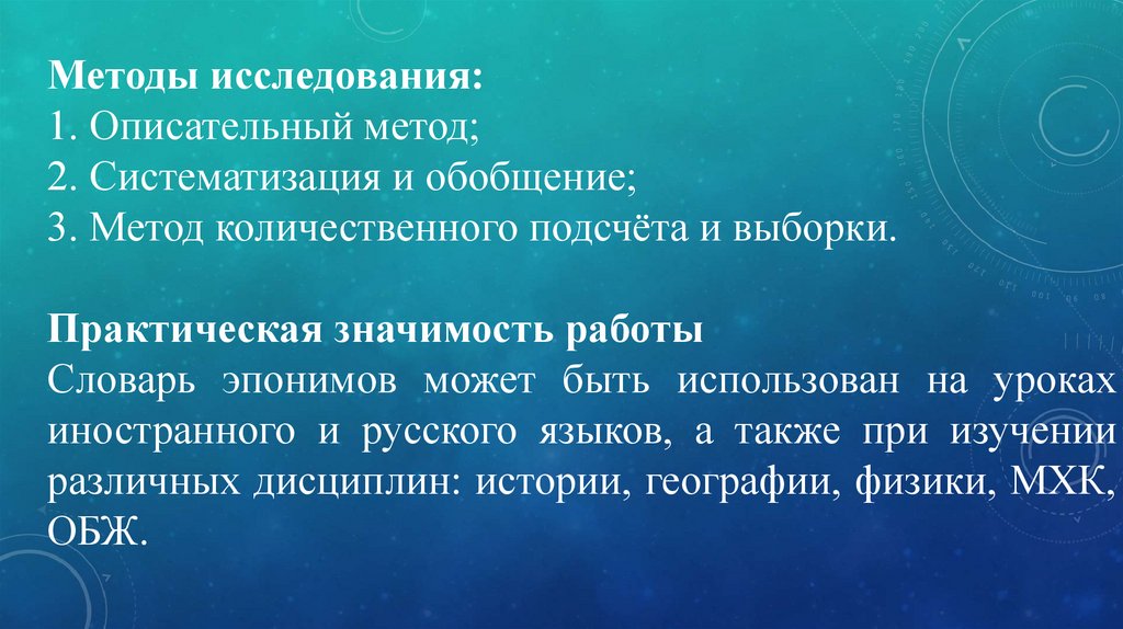 Методы исследования:1. Описательный метод;